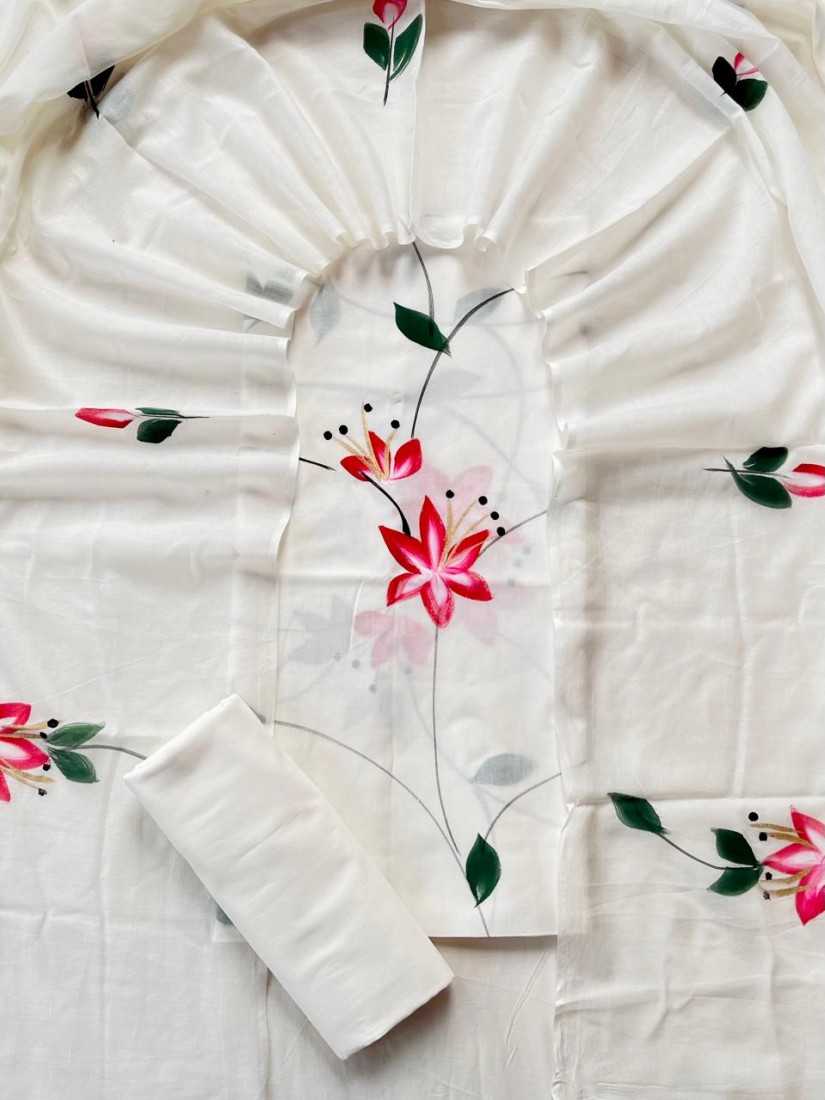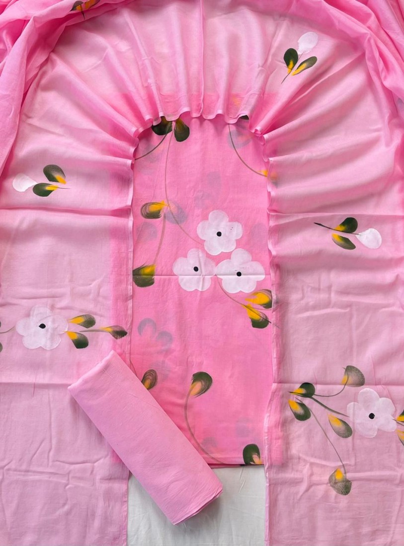 Unstitched Cotton Dress with Chiffon Dupatta