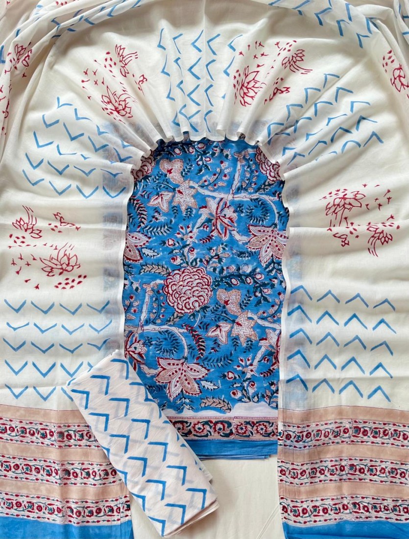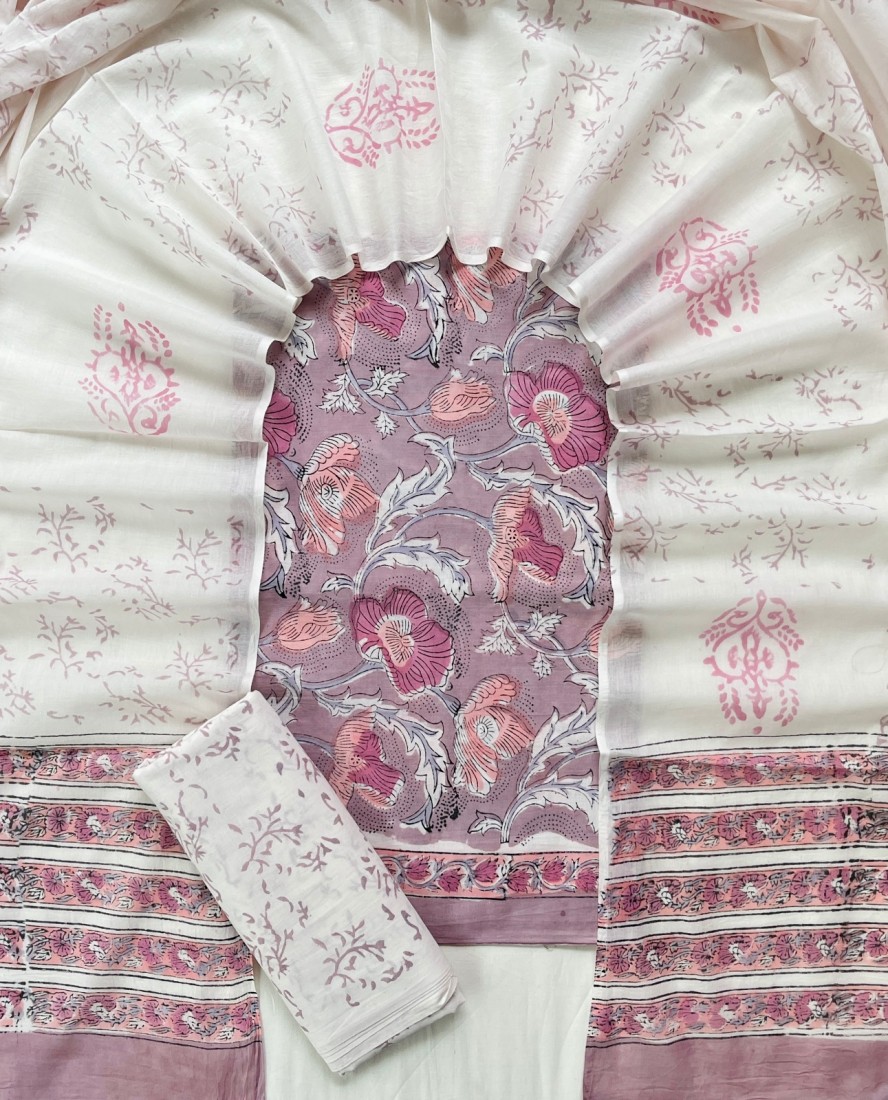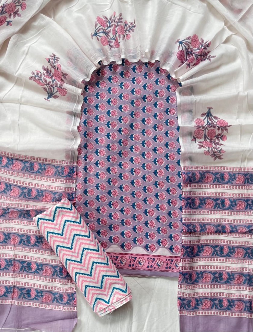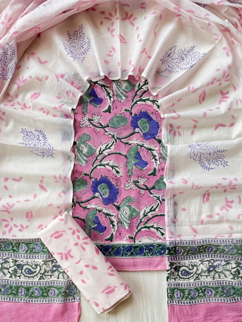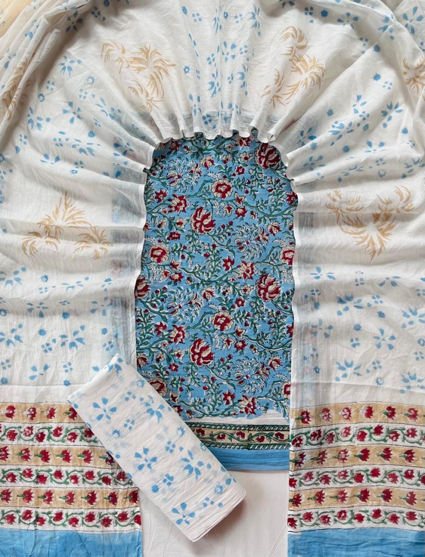 Hand Block Printed Cotton suit sets with cotton li