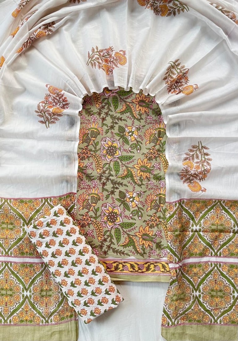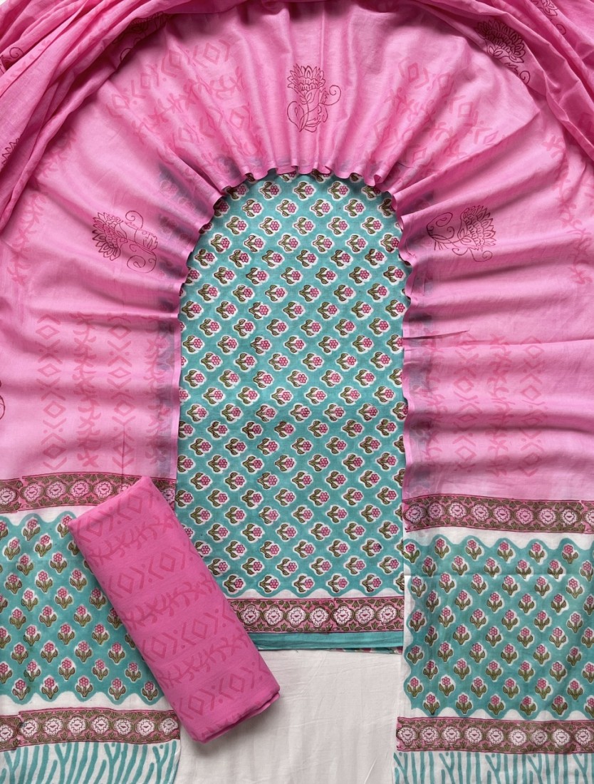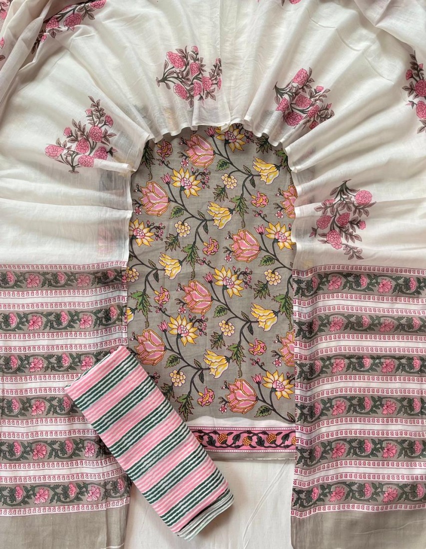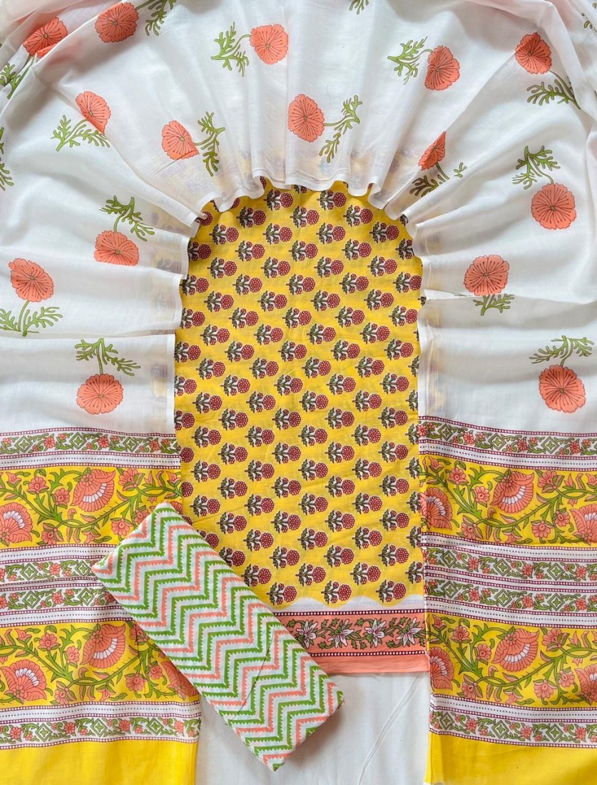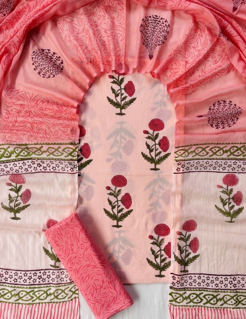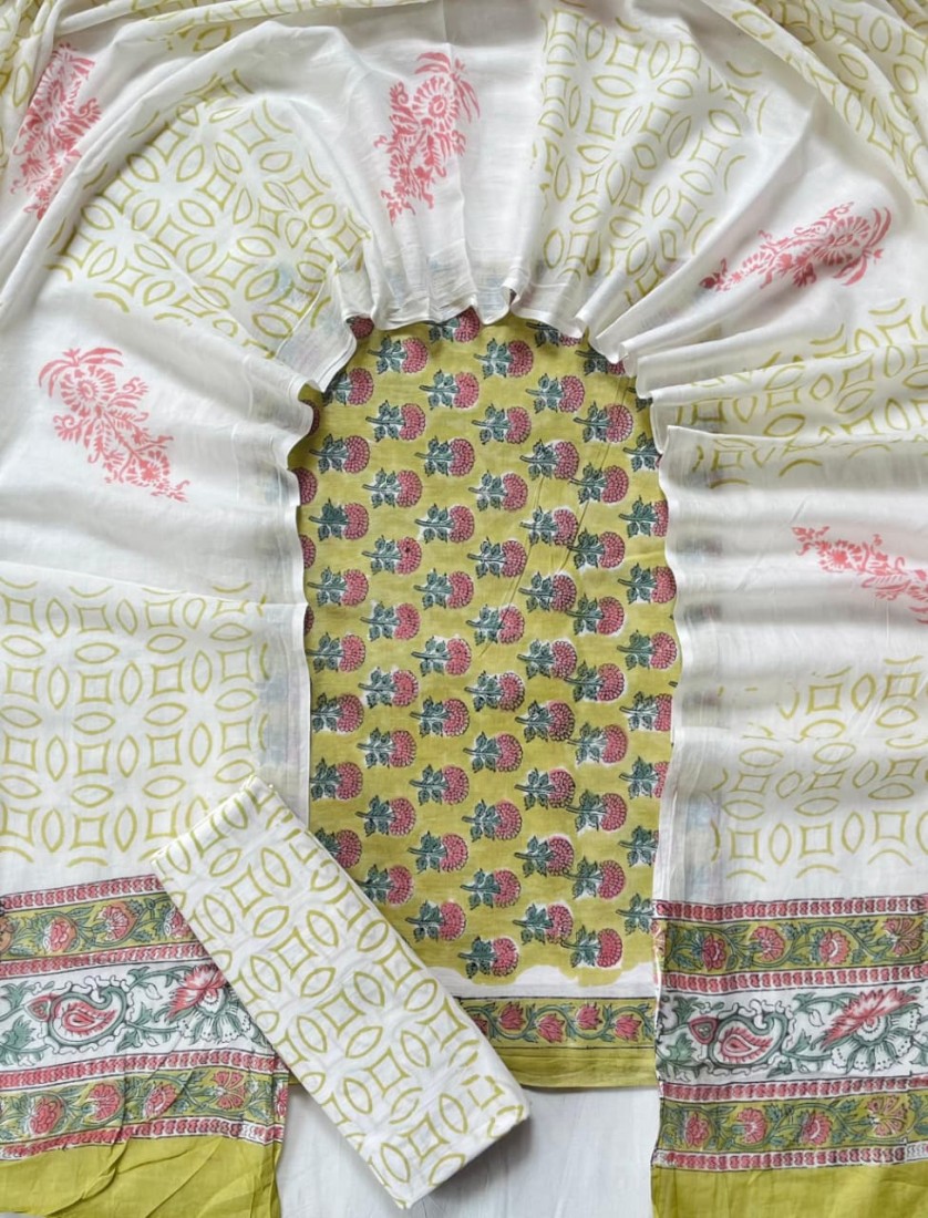 new hand block printed cotton dress materials with chiffon duptta