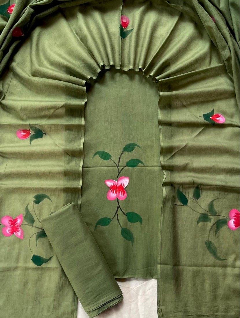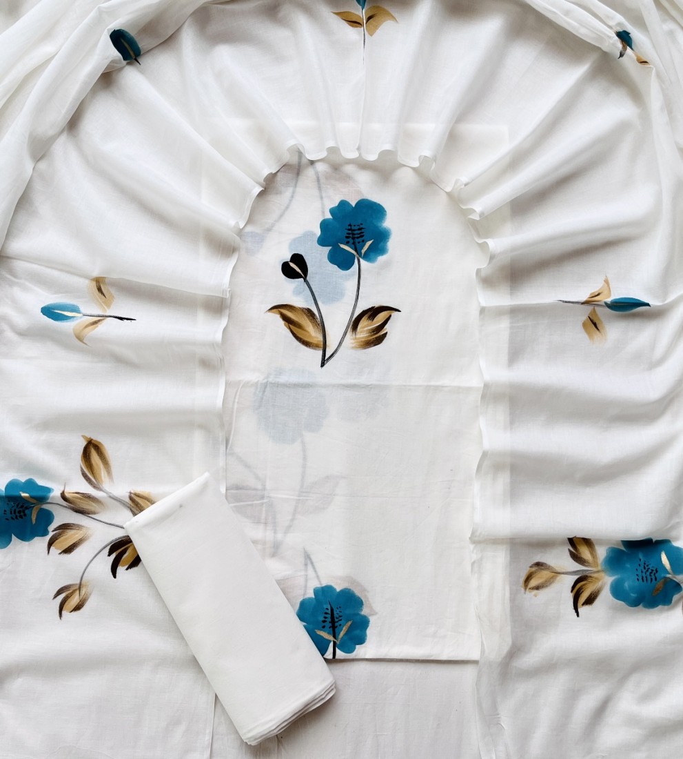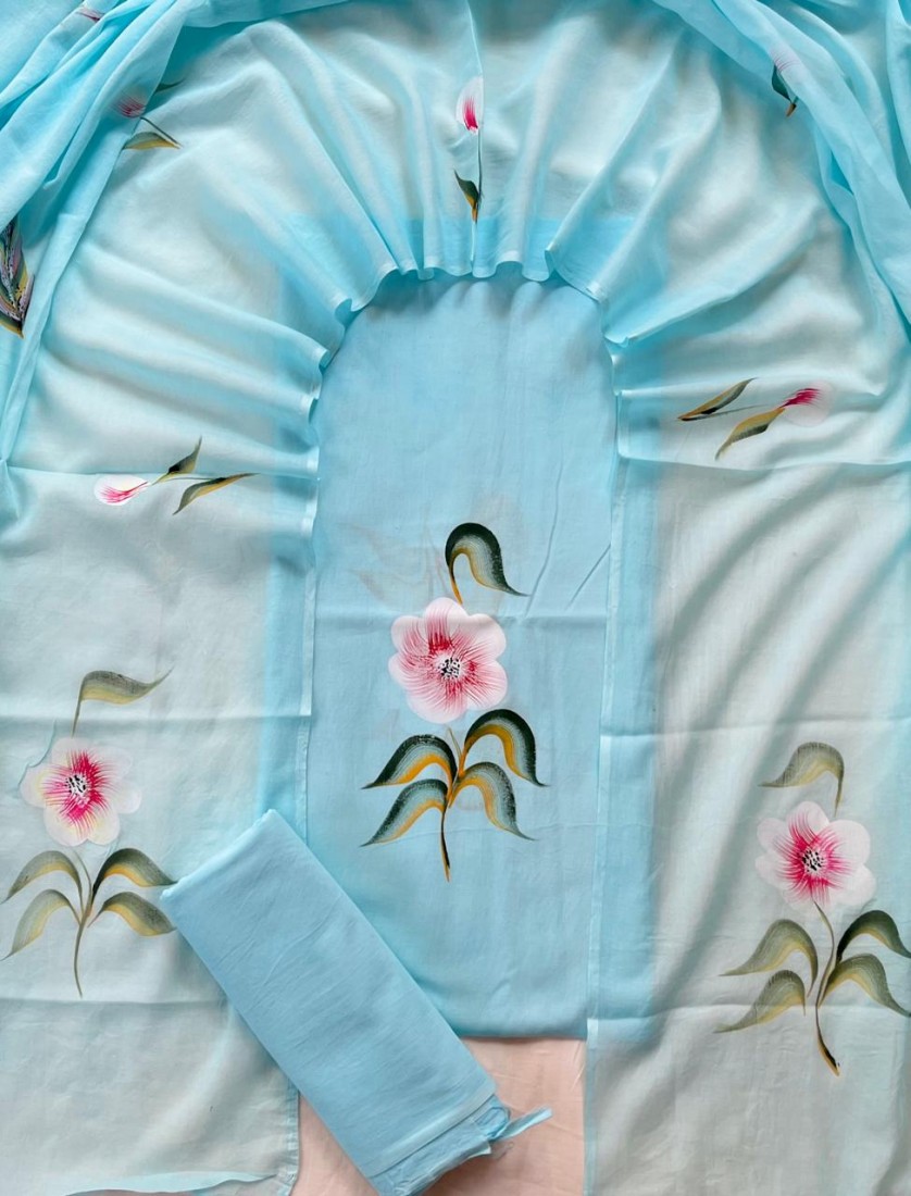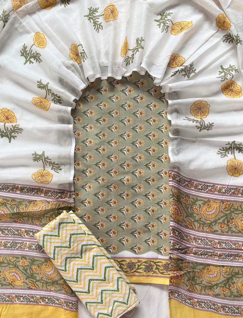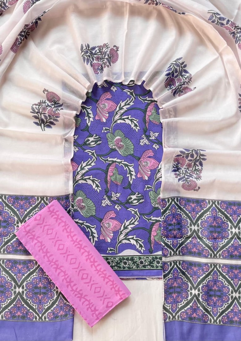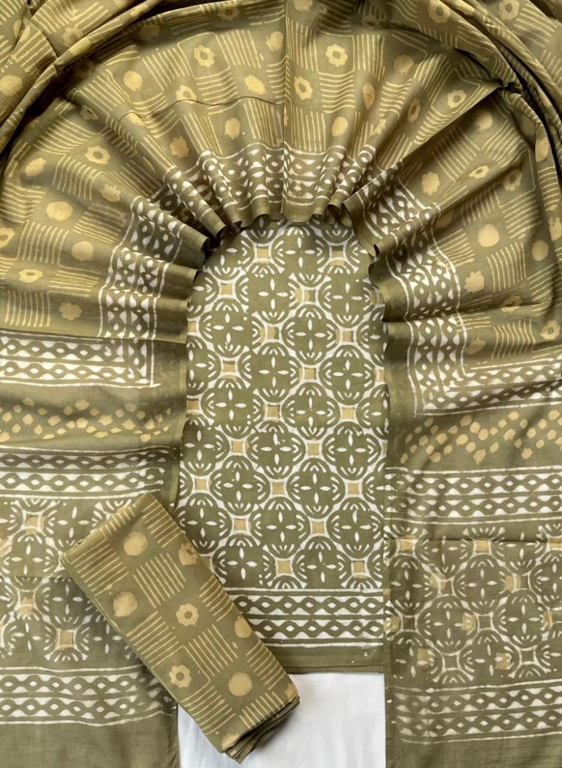 new hand block printed cotton dress materials with chiffon duptta