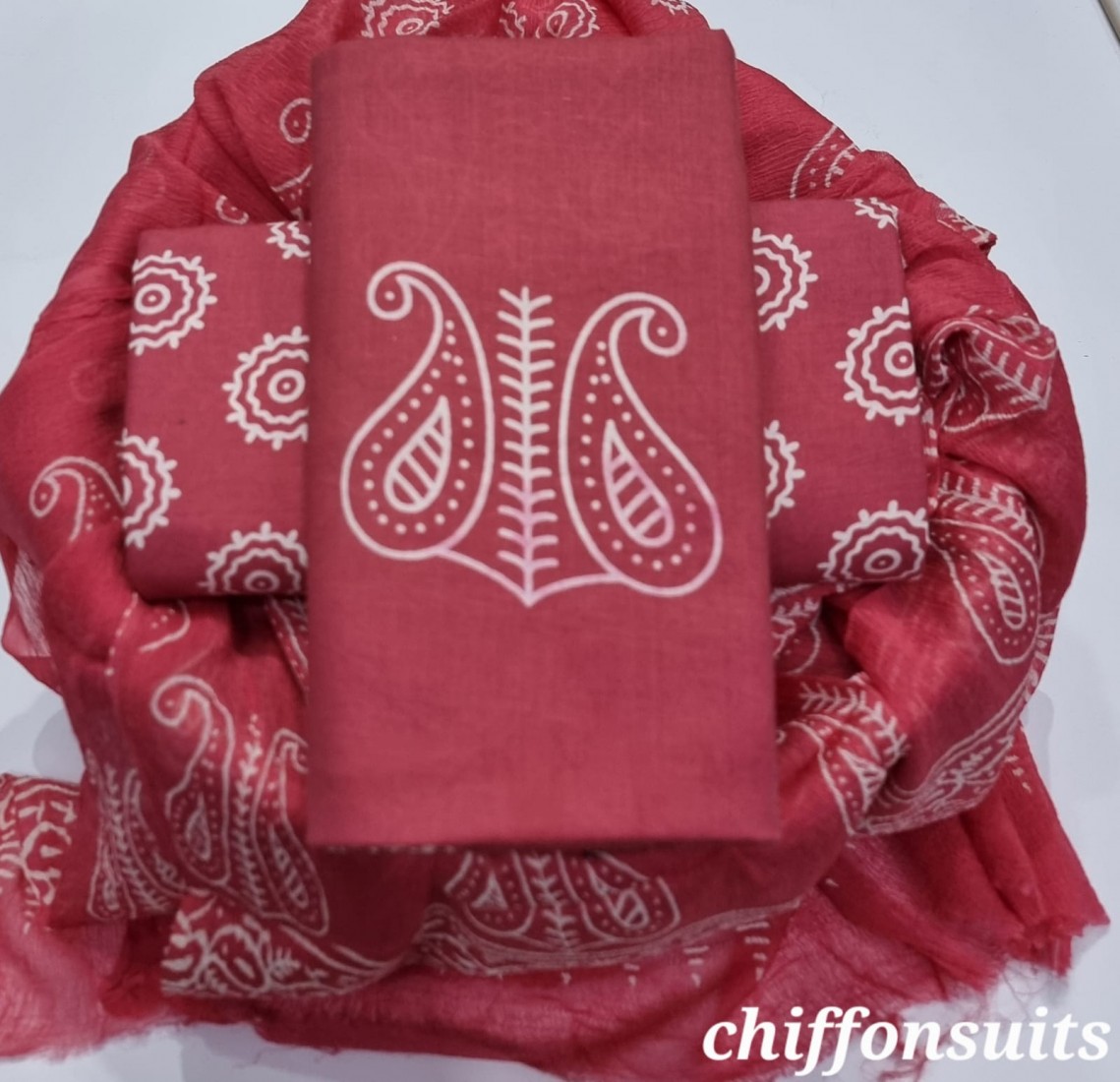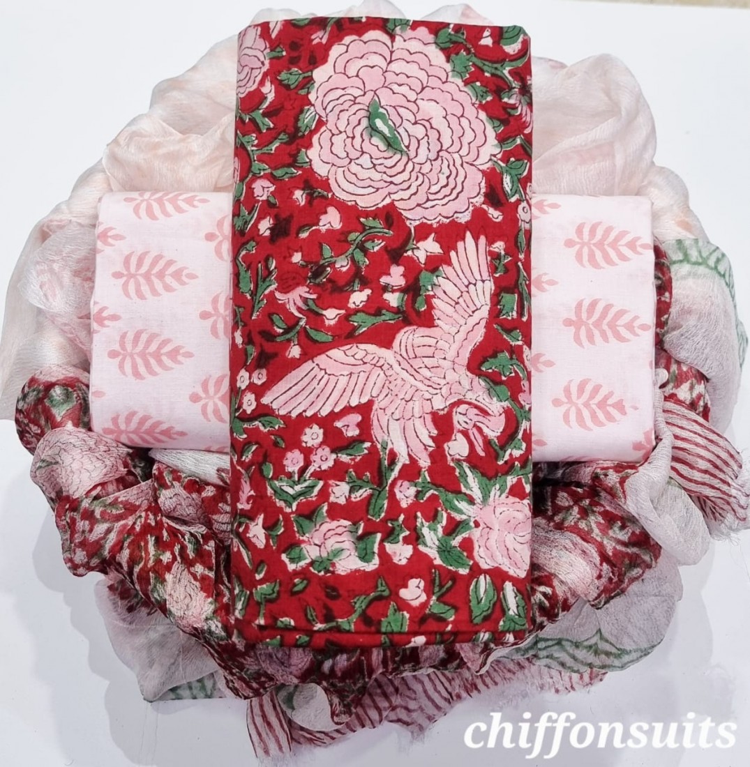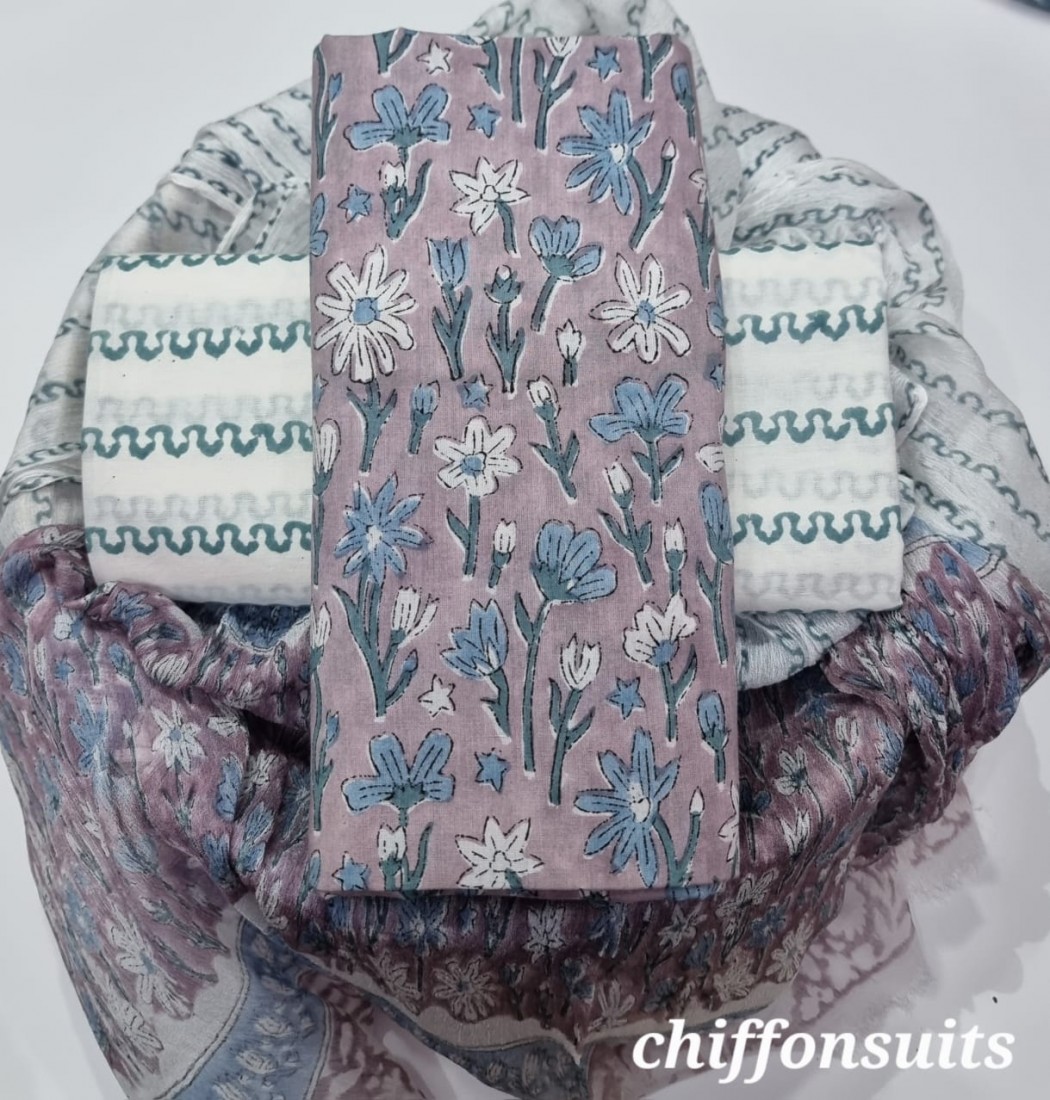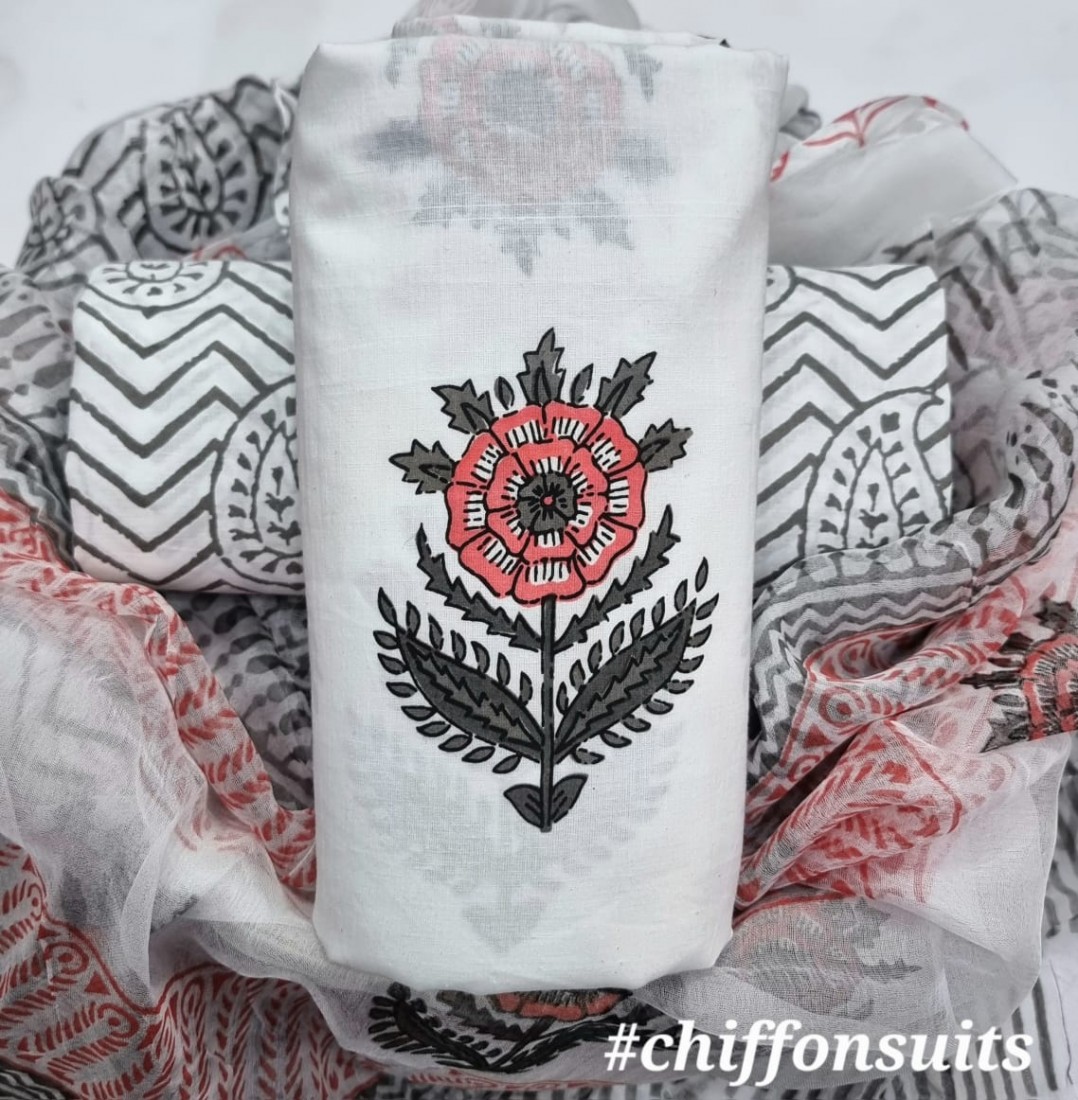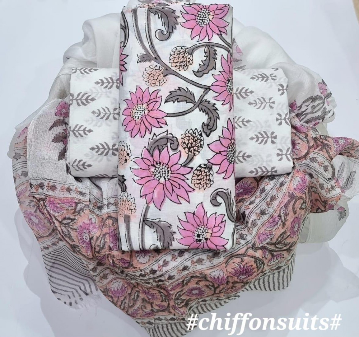 new hand block printed cotton dress materials with chiffon duptta