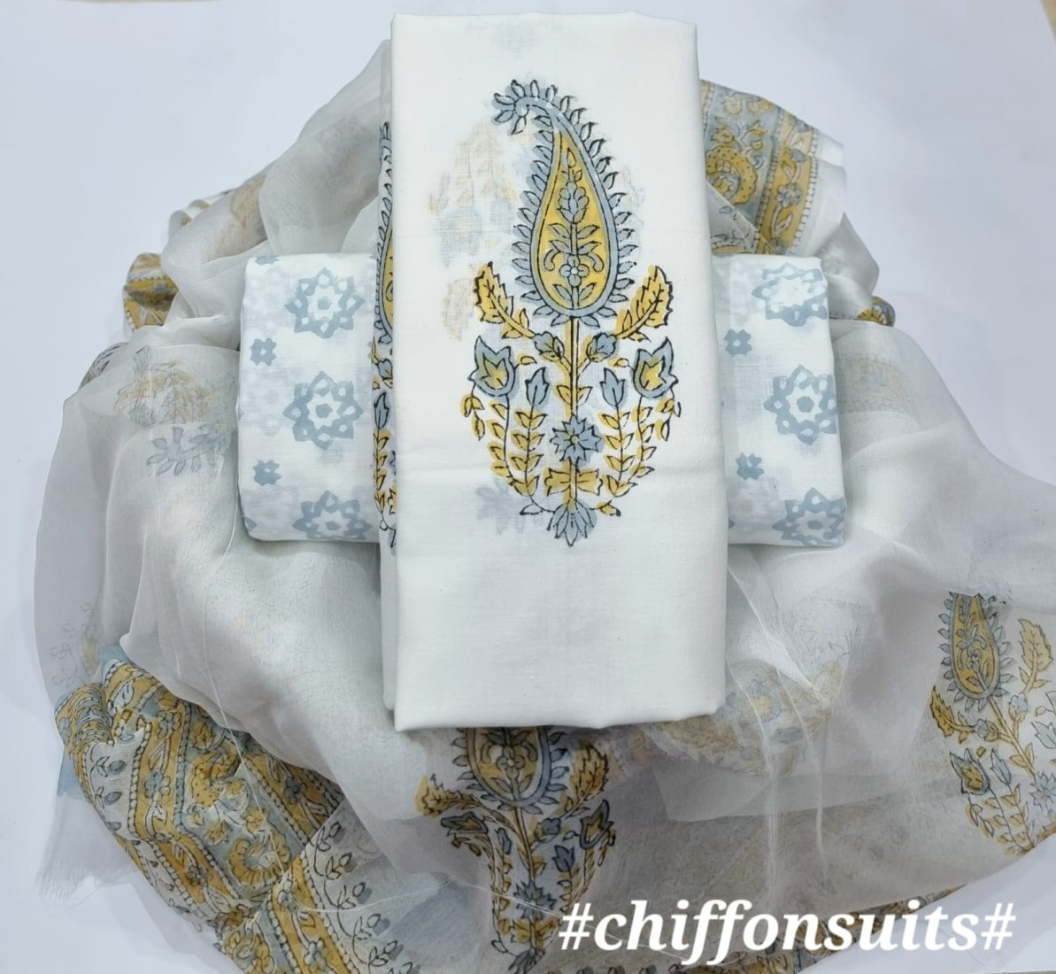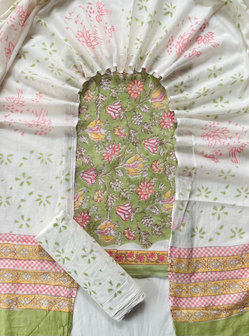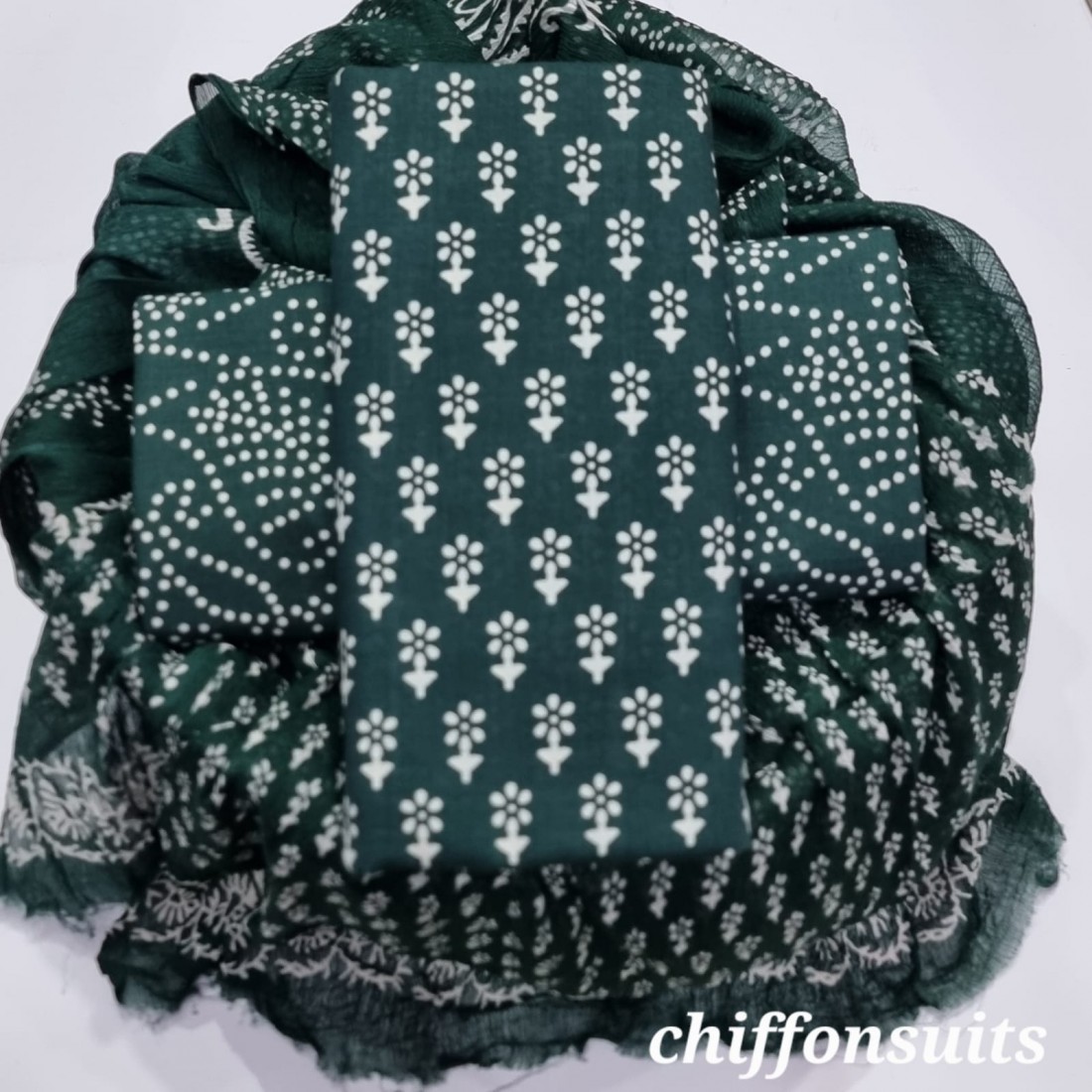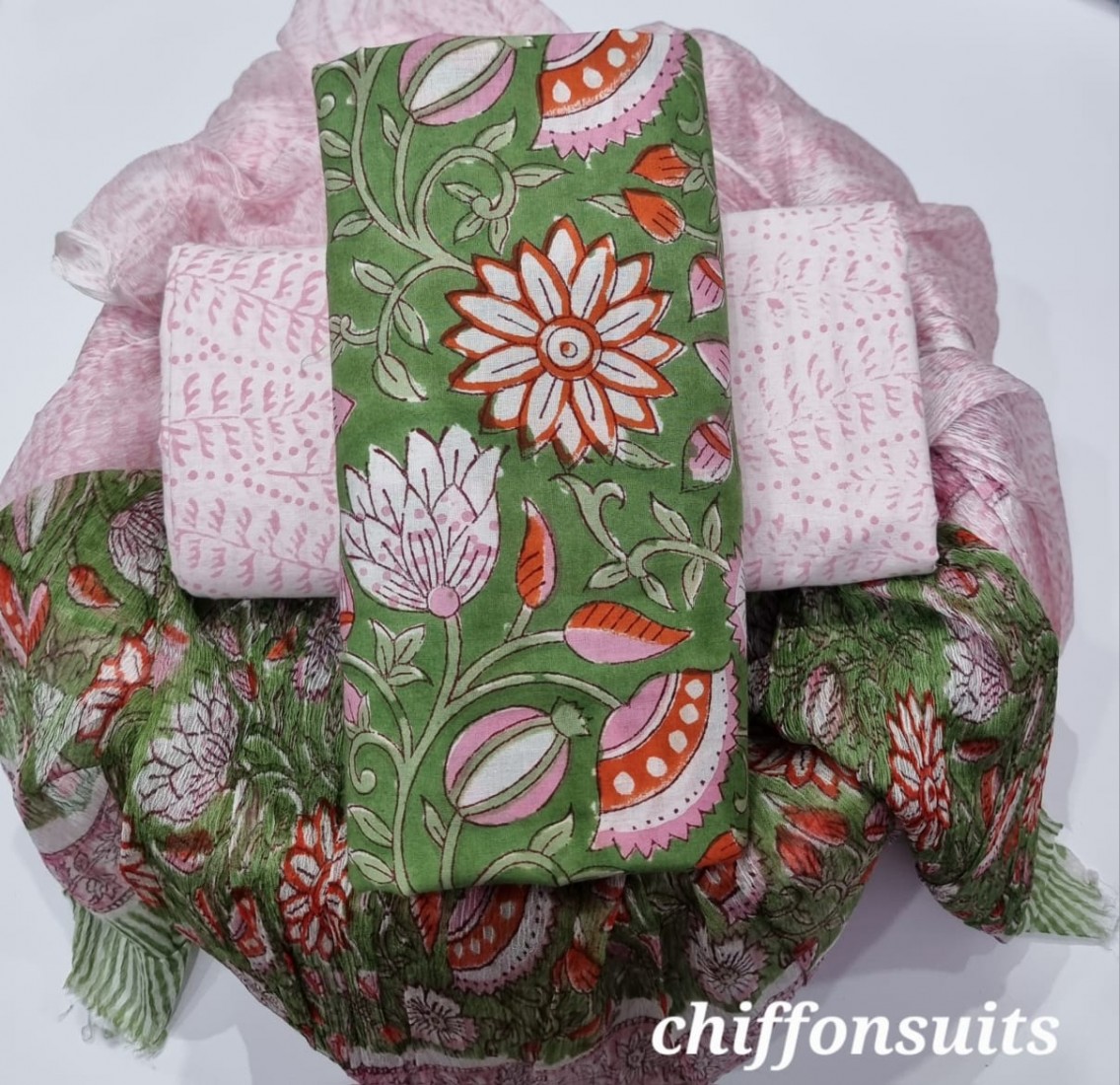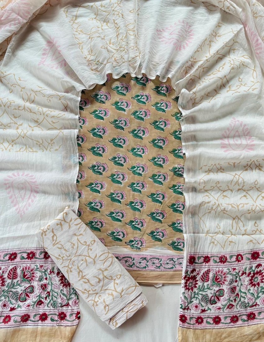 new hand block printed cotton dress materials with chiffon duptta