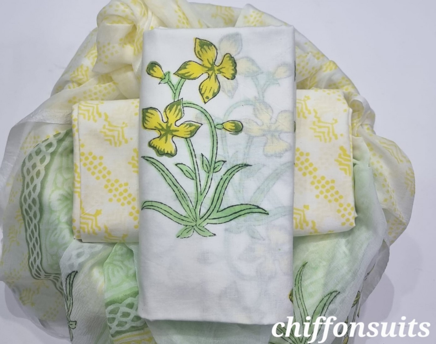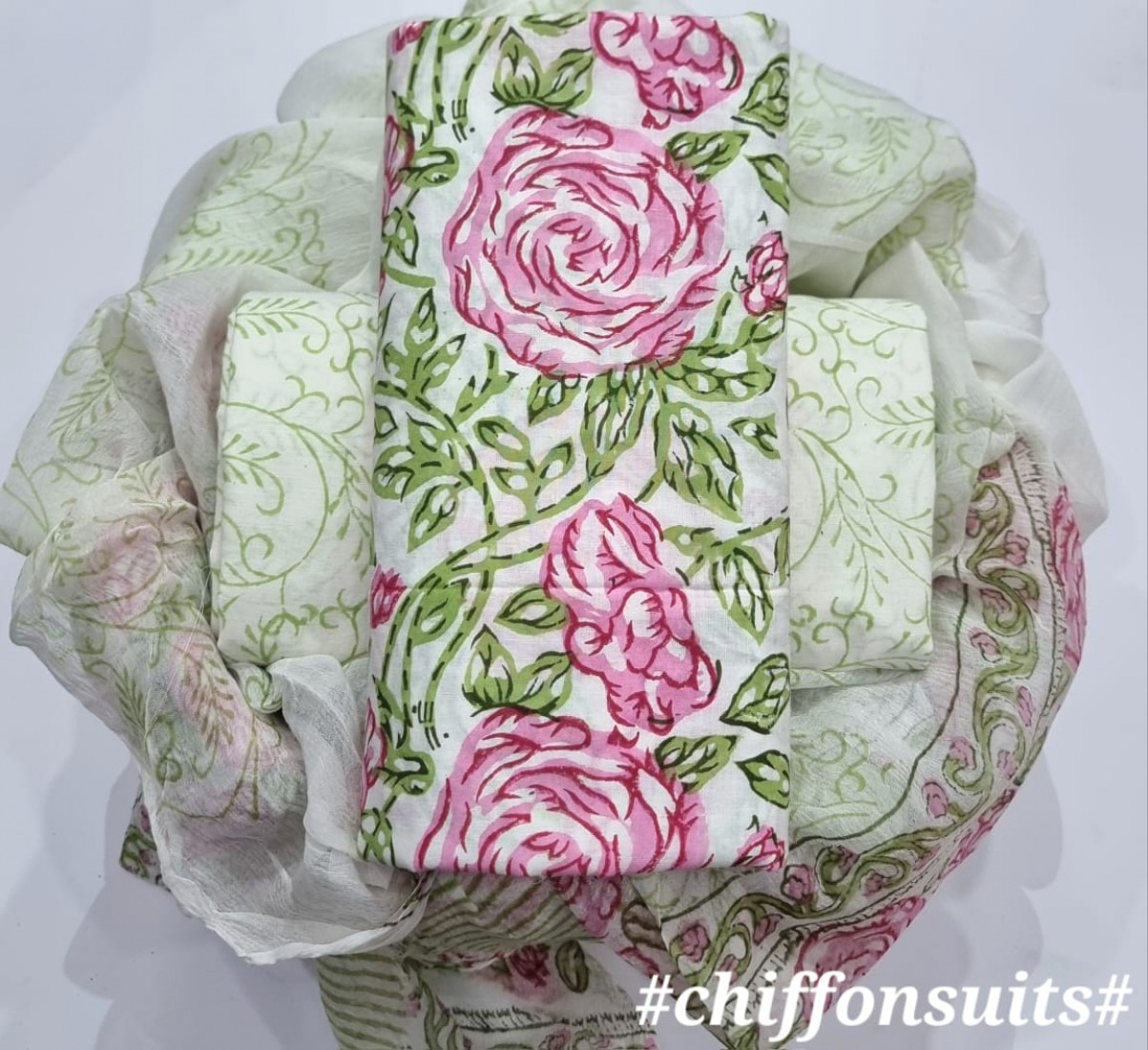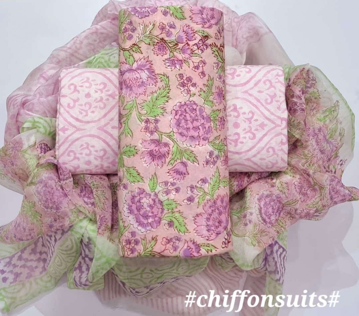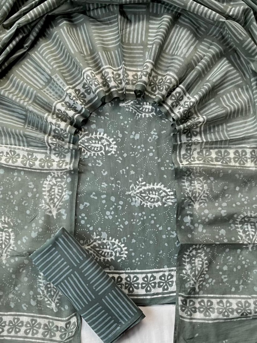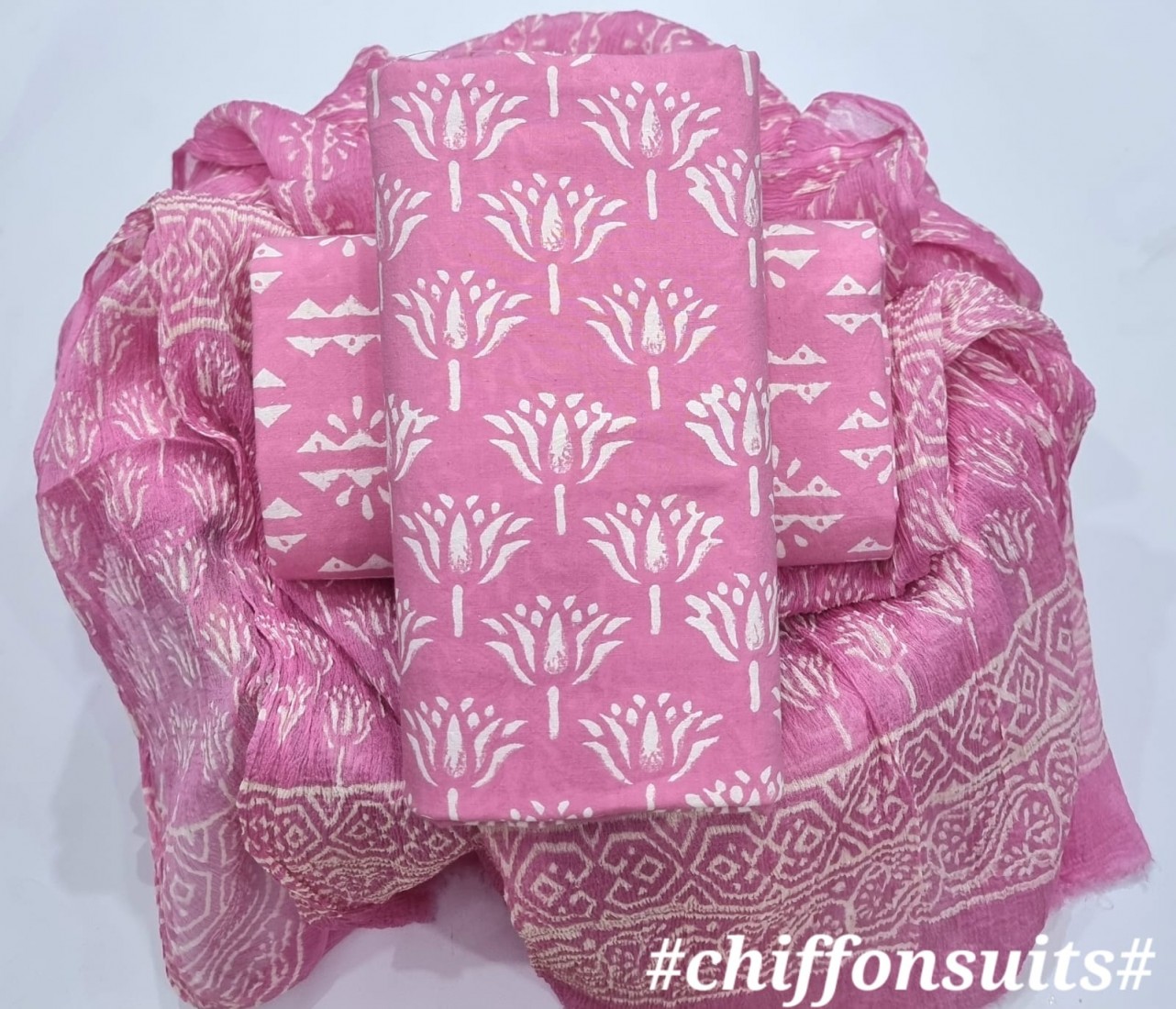 new hand block printed cotton dress materials with chiffon duptta