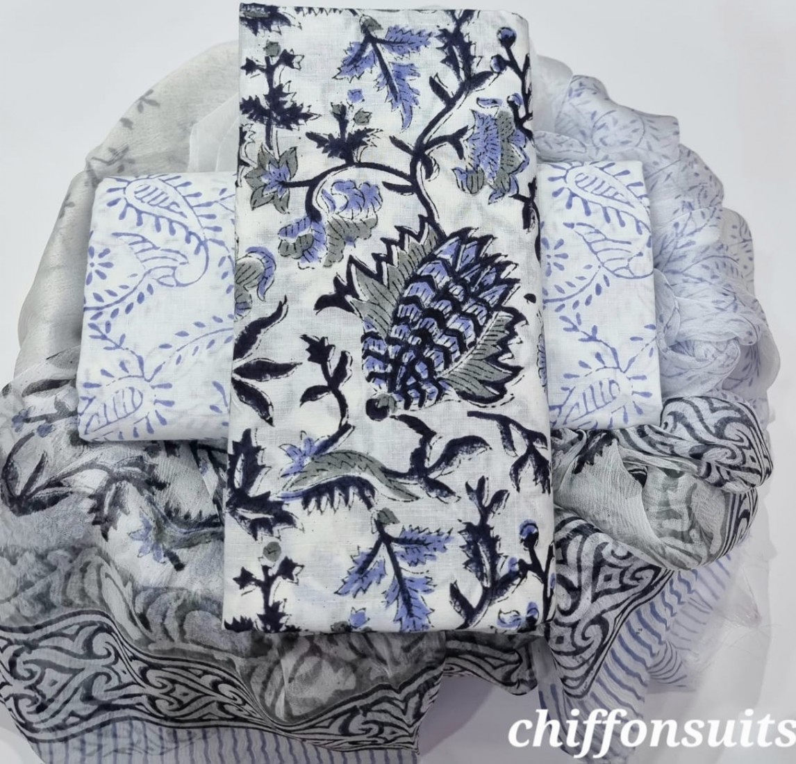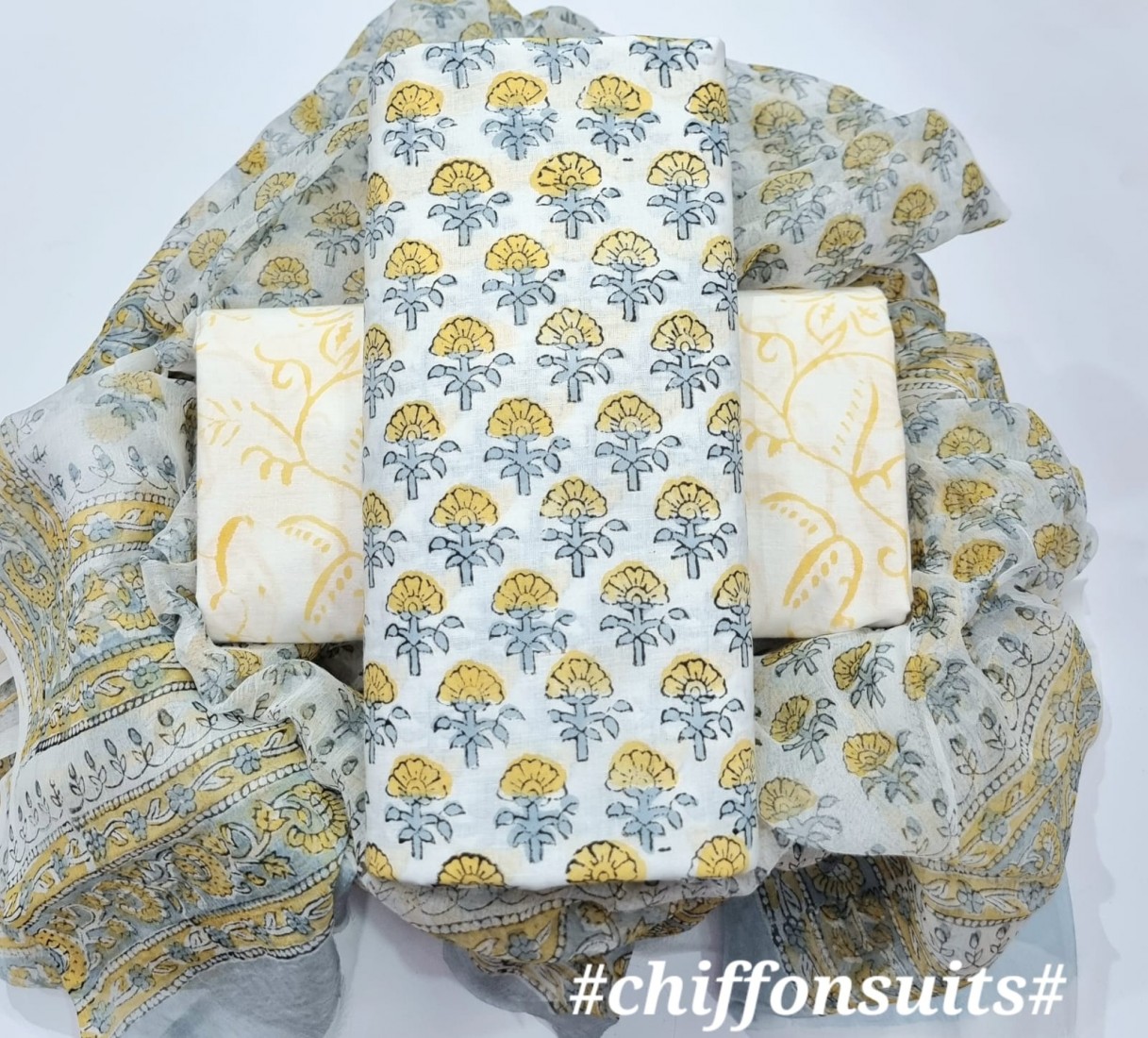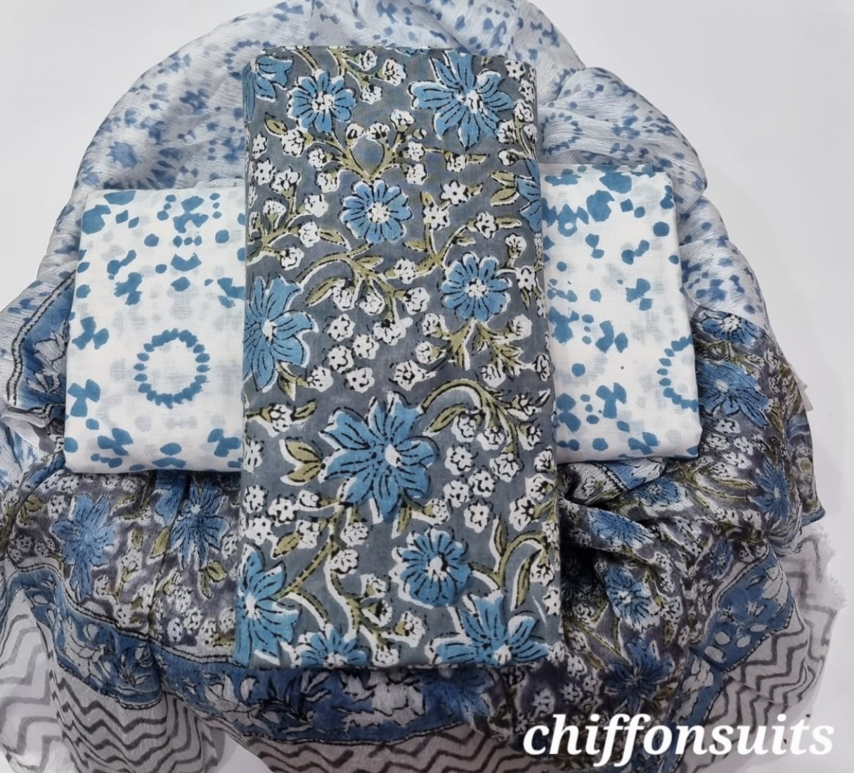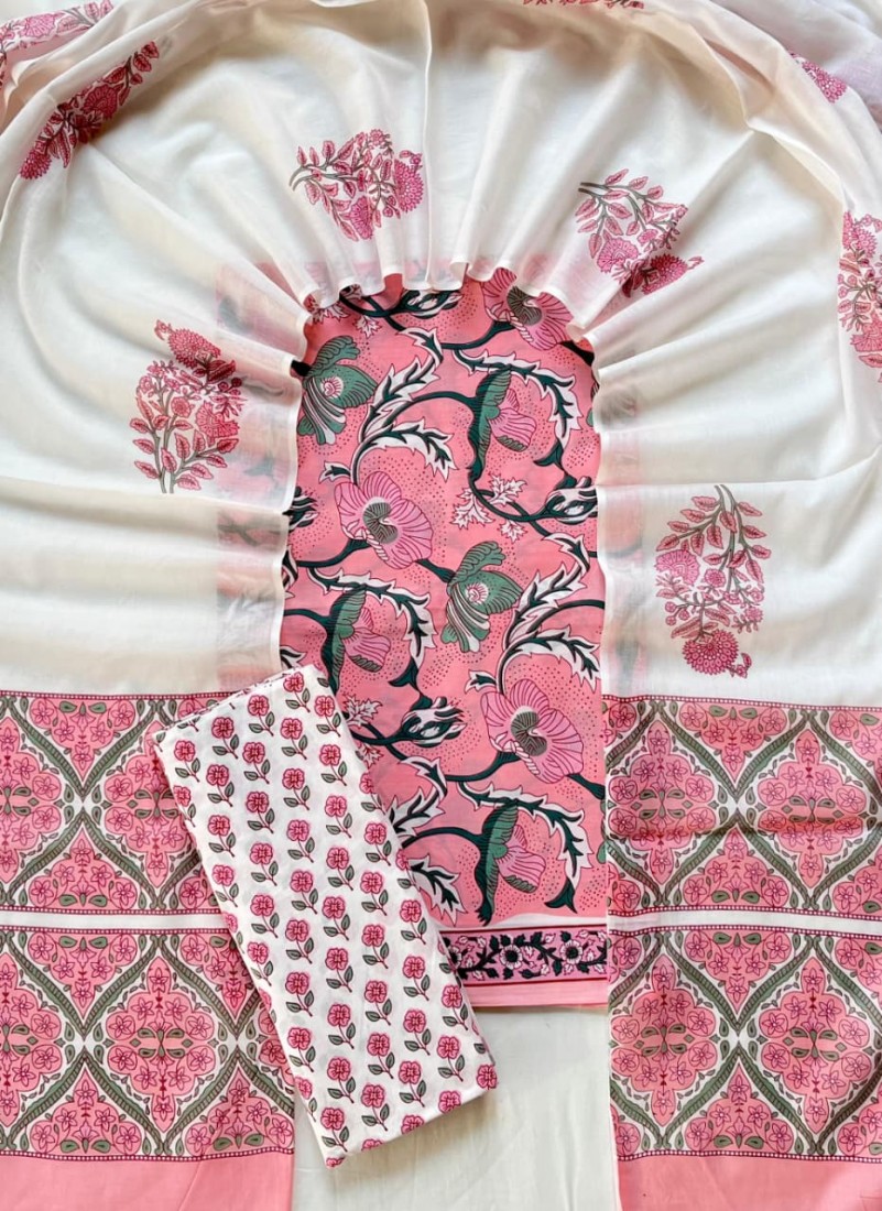 new hand block printed cotton dress materials with chiffon duptta