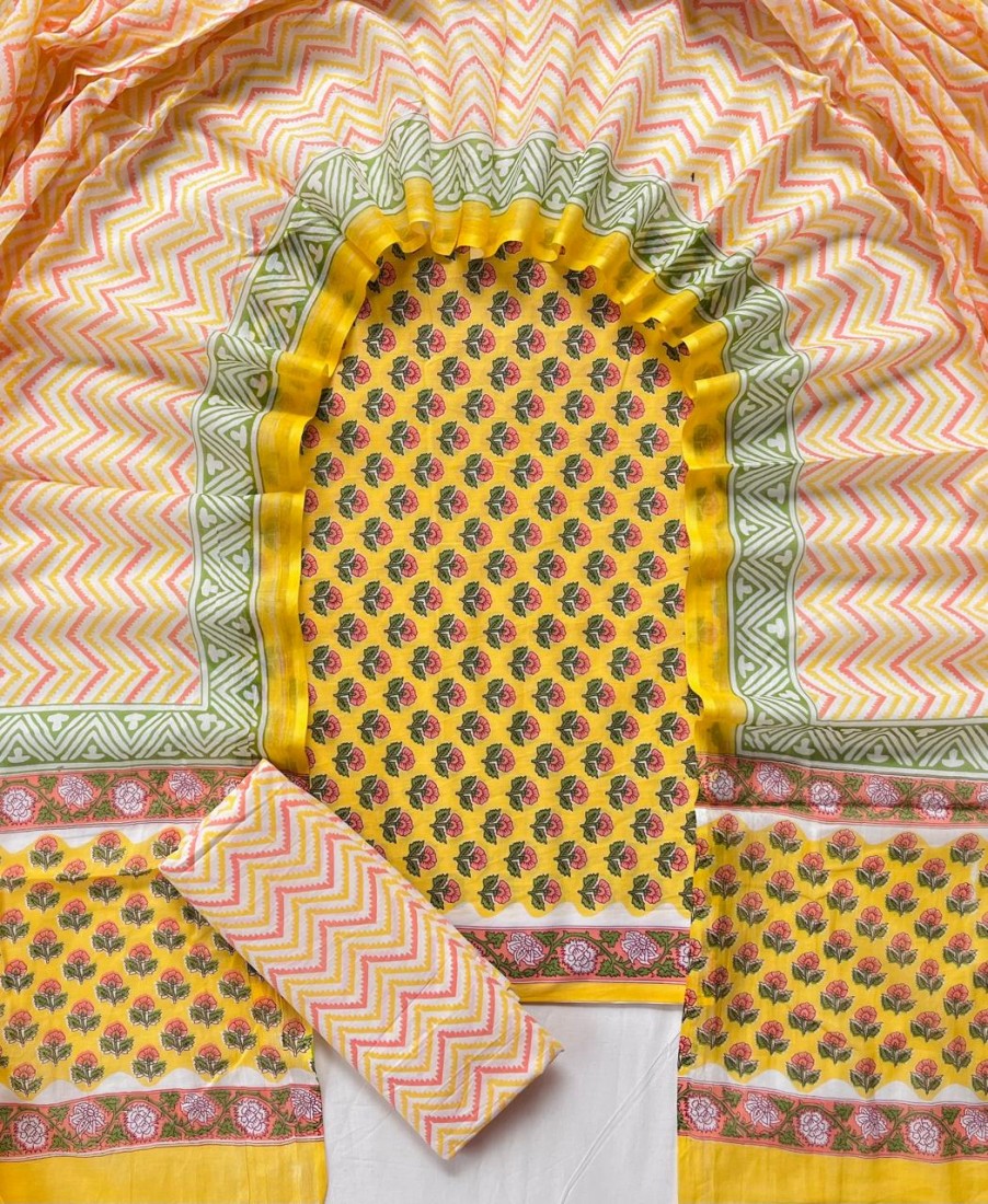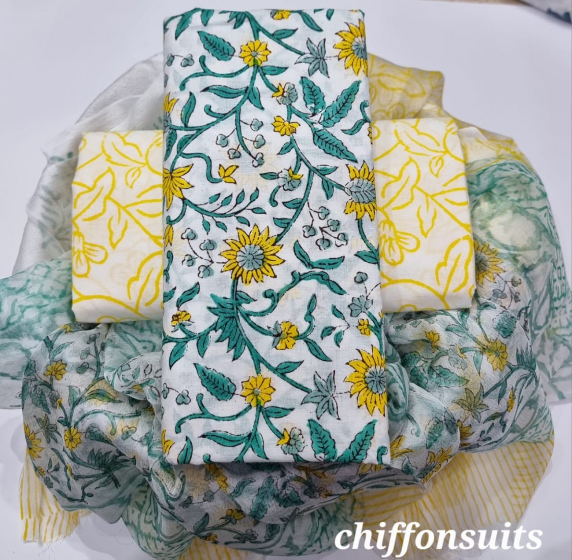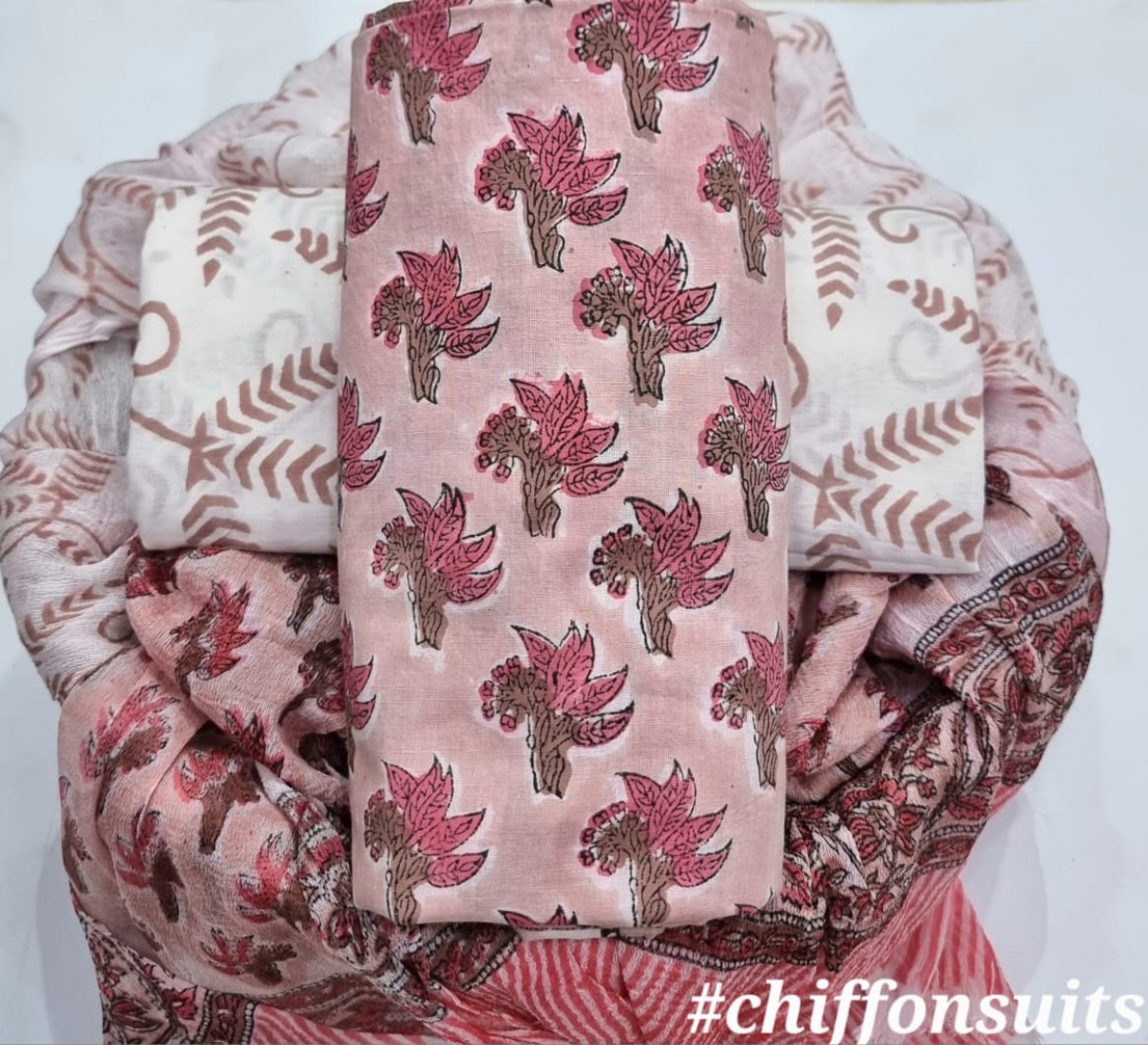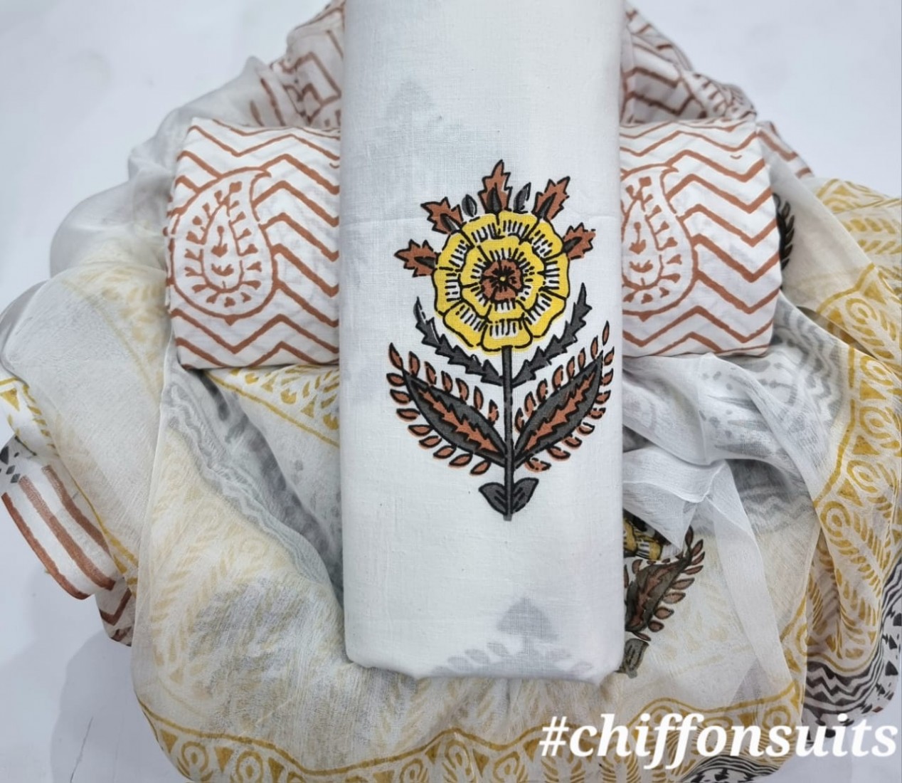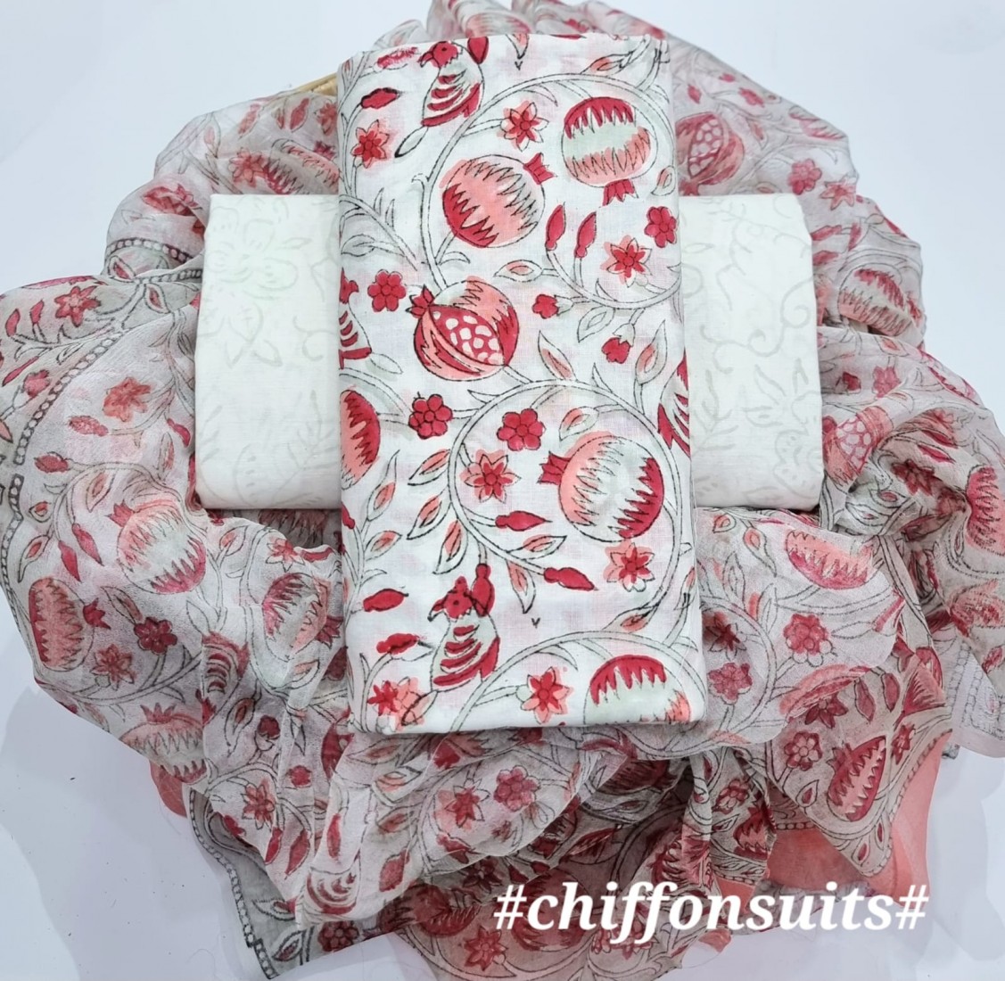 new hand block printed cotton dress materials with chiffon duptta