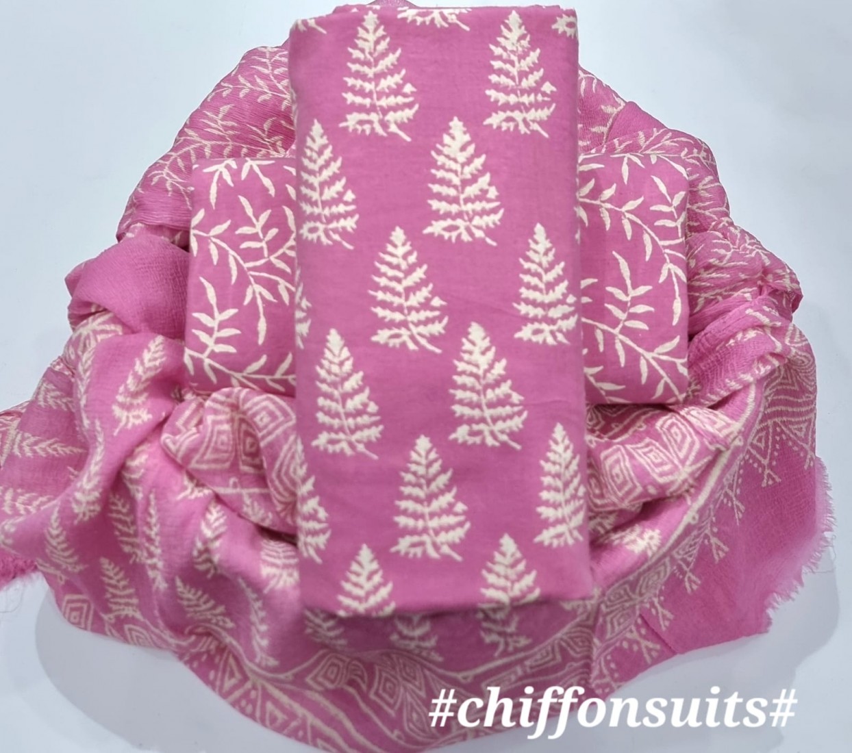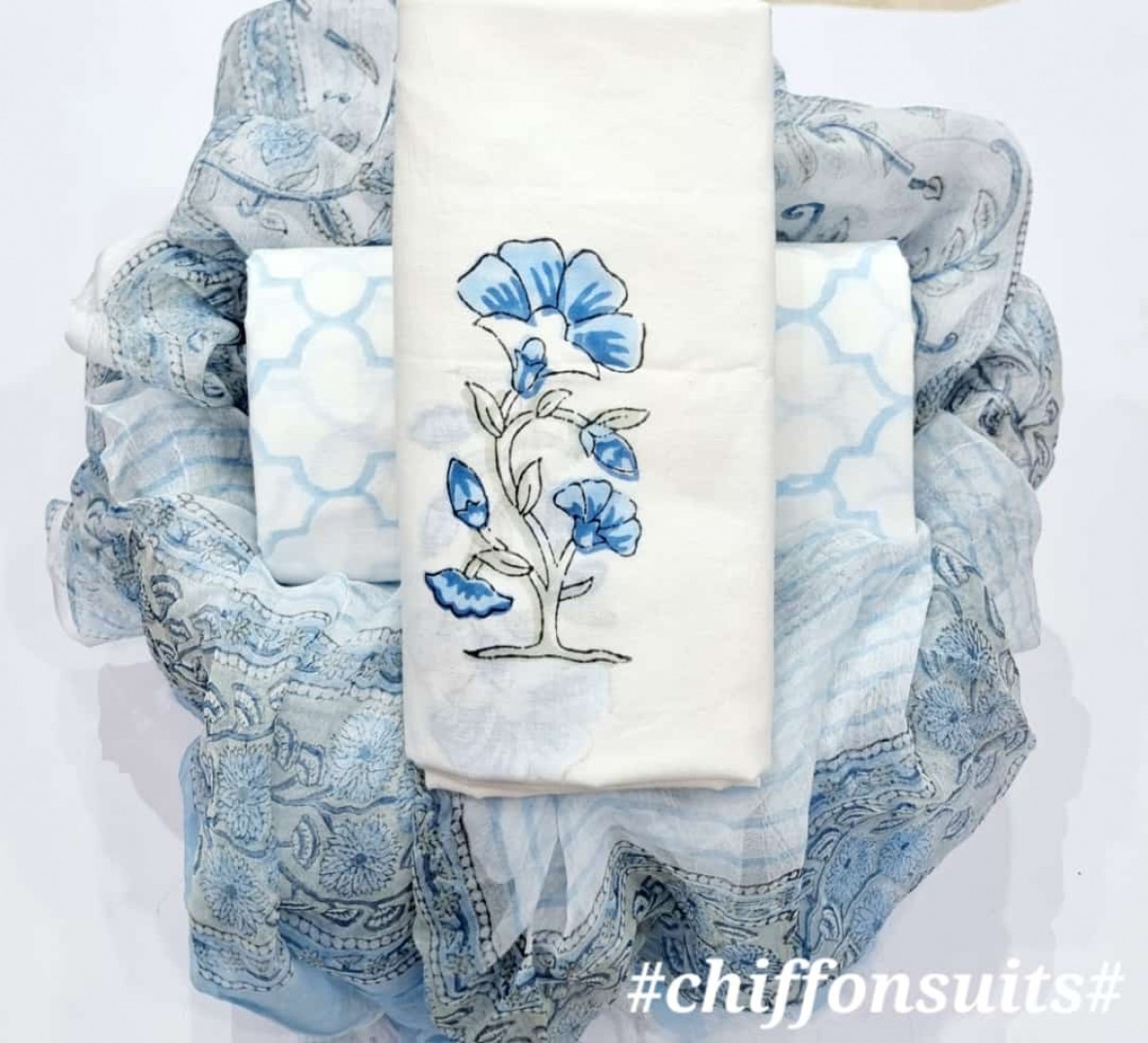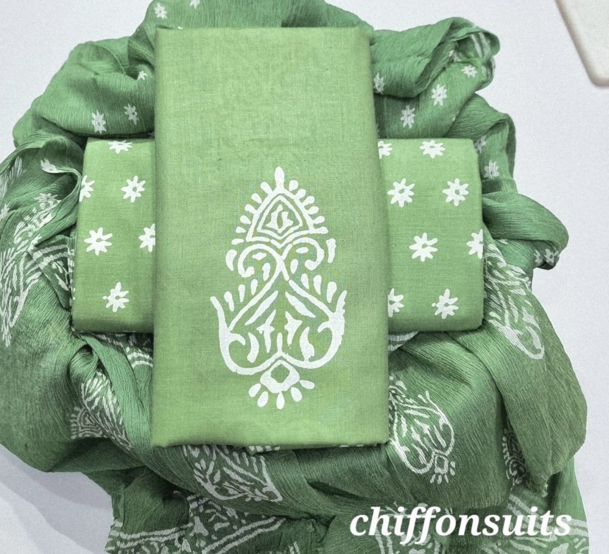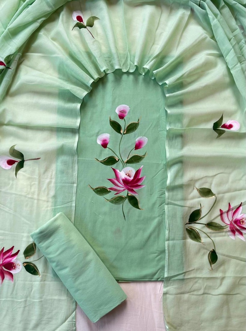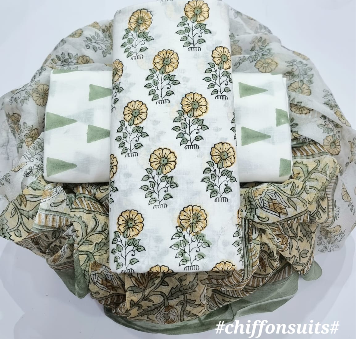 new hand block printed cotton dress materials with chiffon duptta