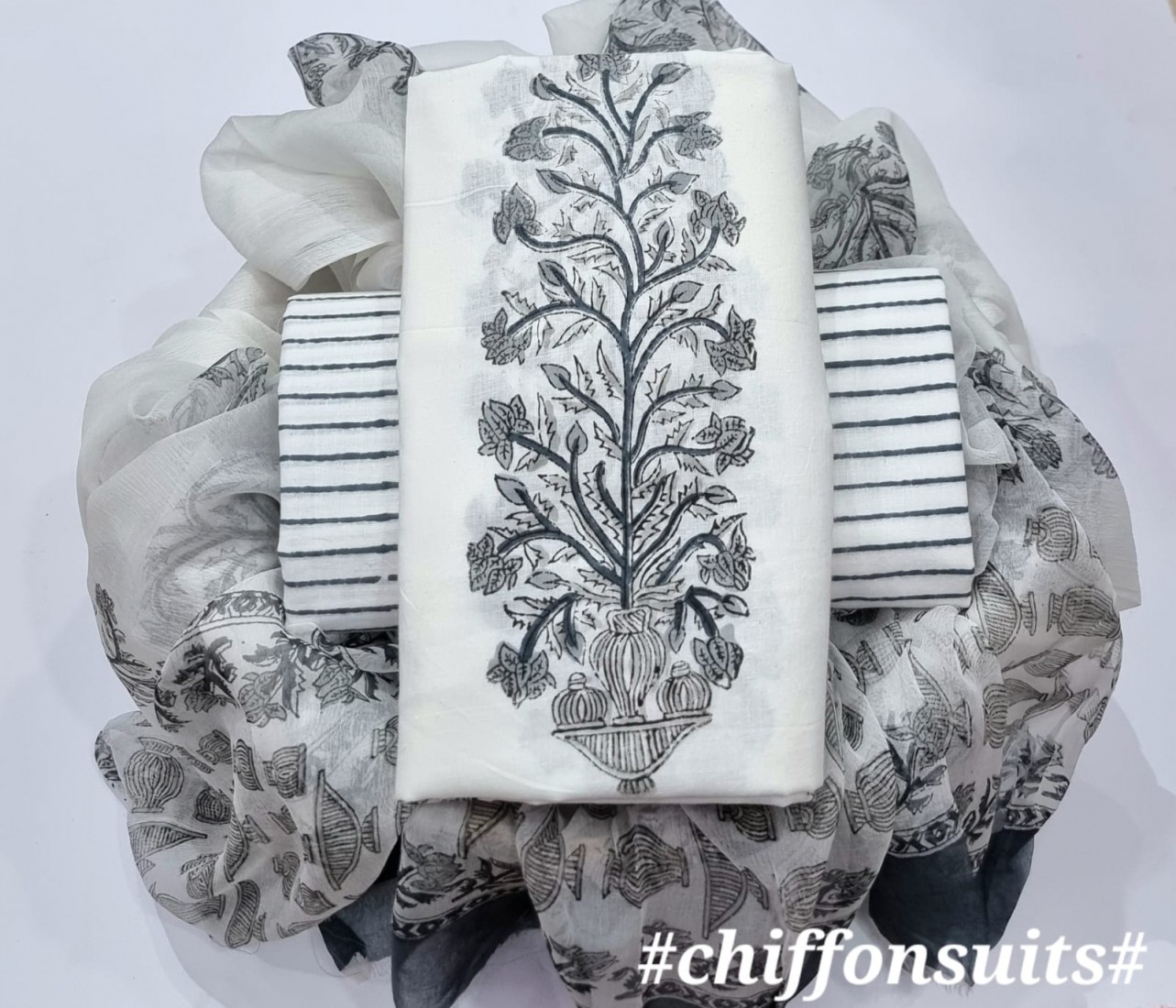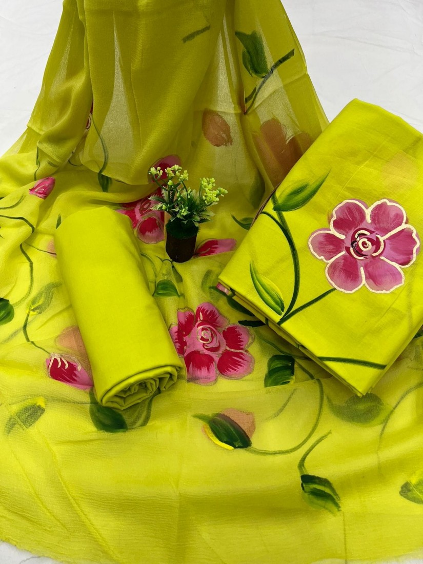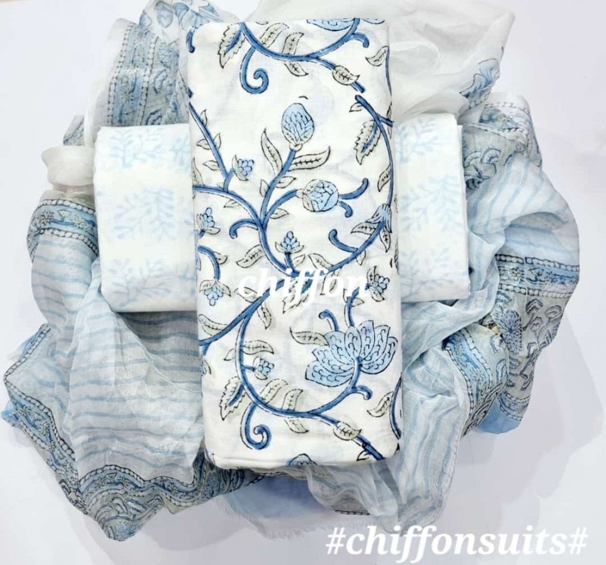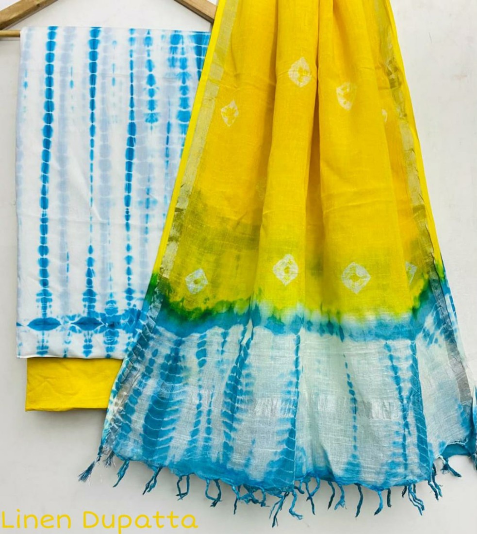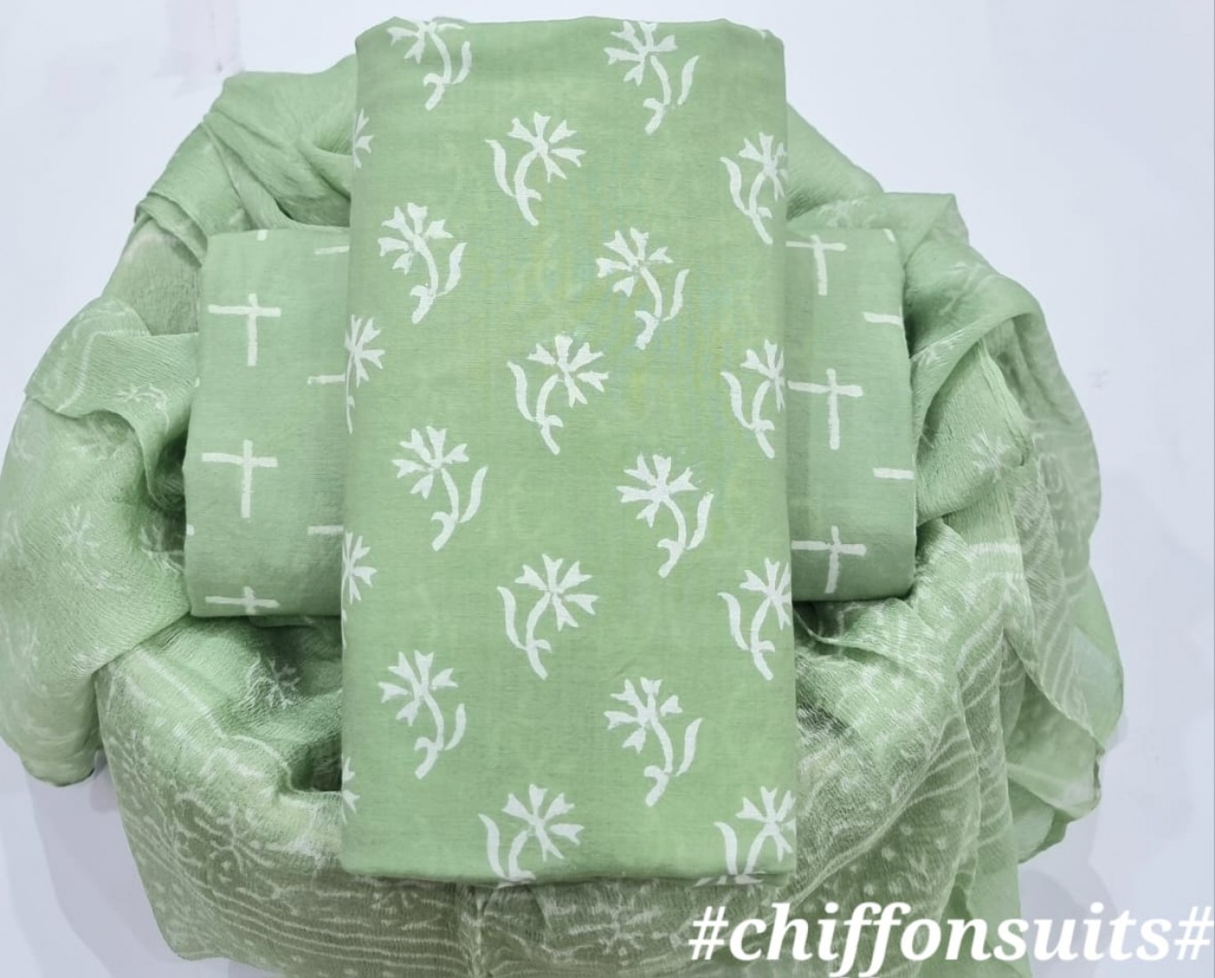 new hand block printed cotton dress materials with chiffon duptta