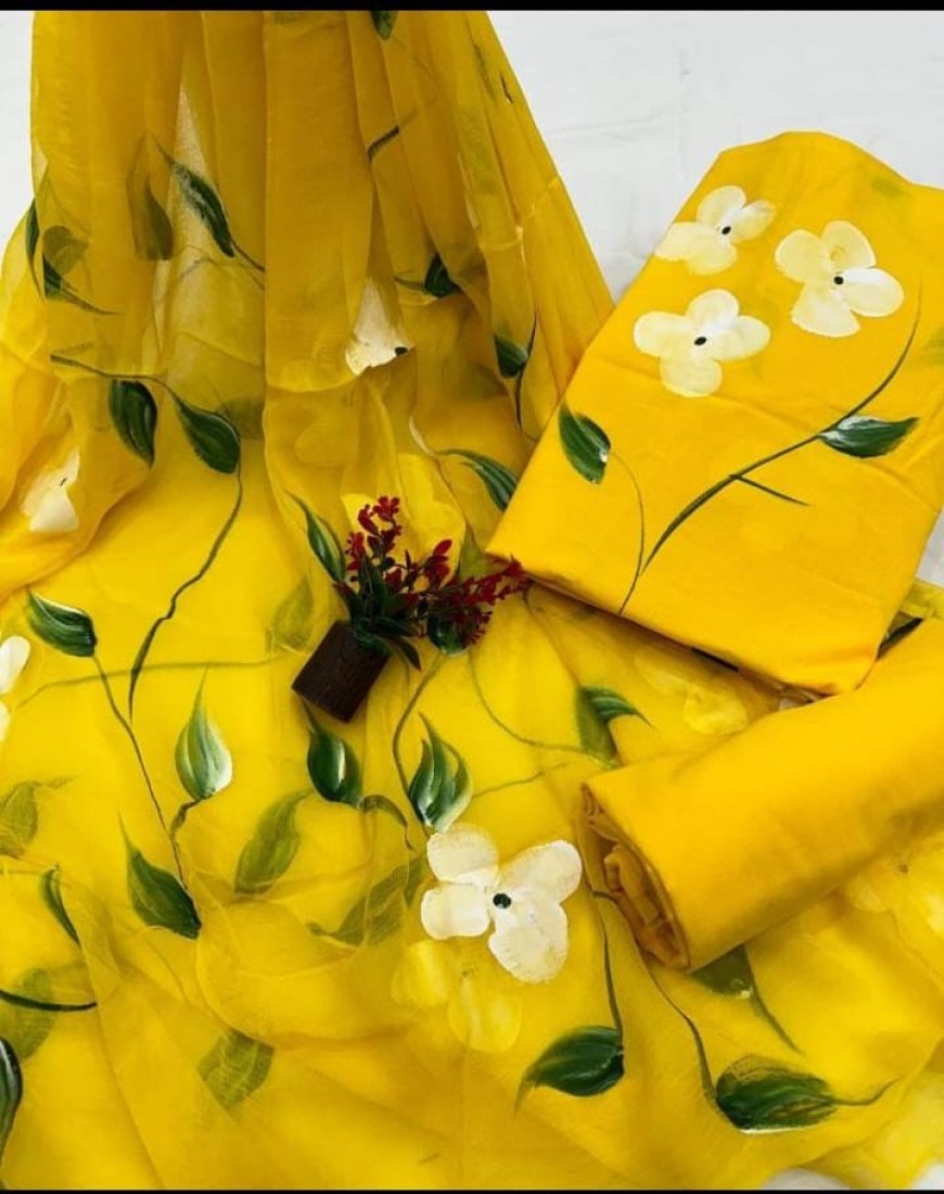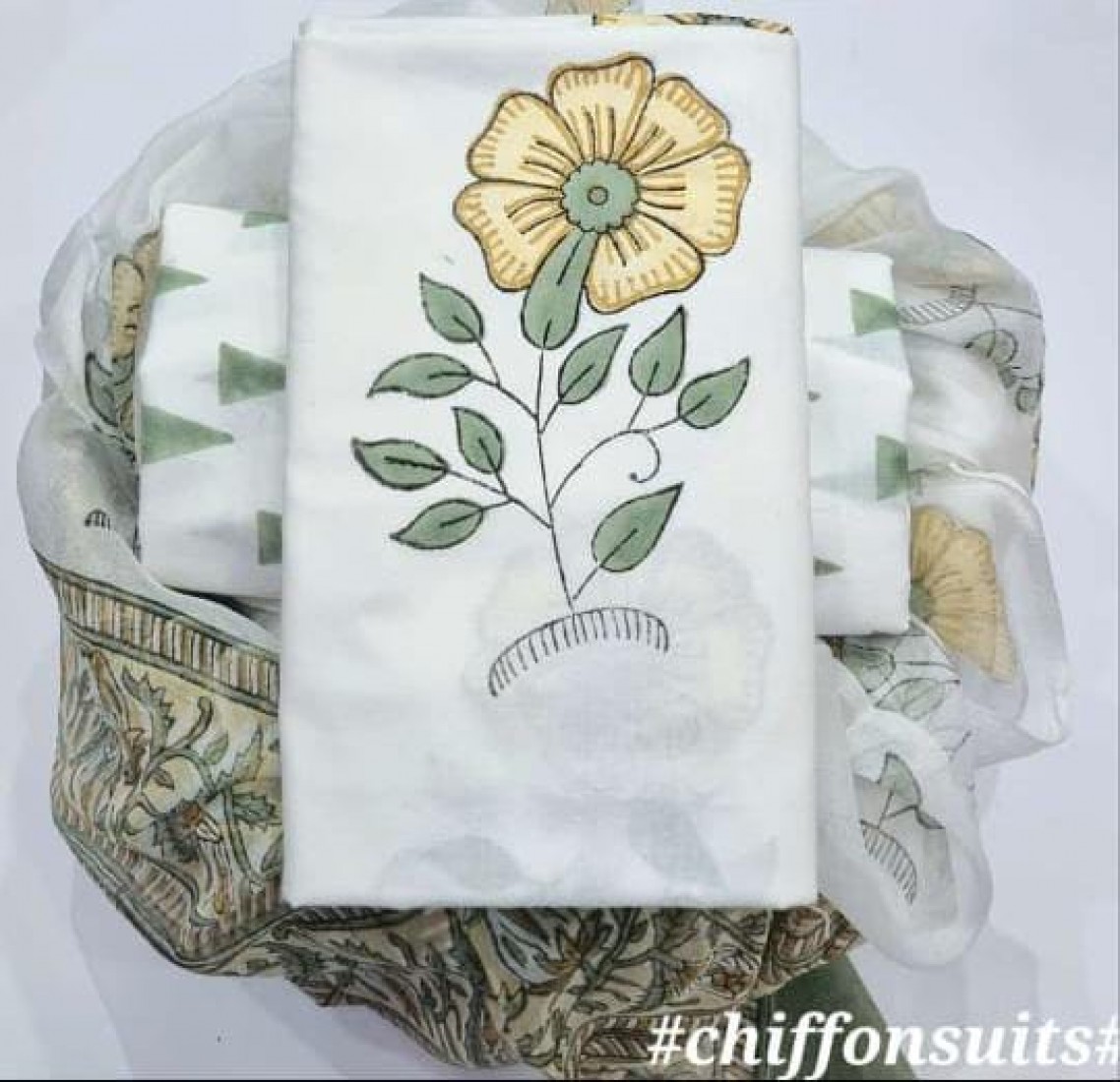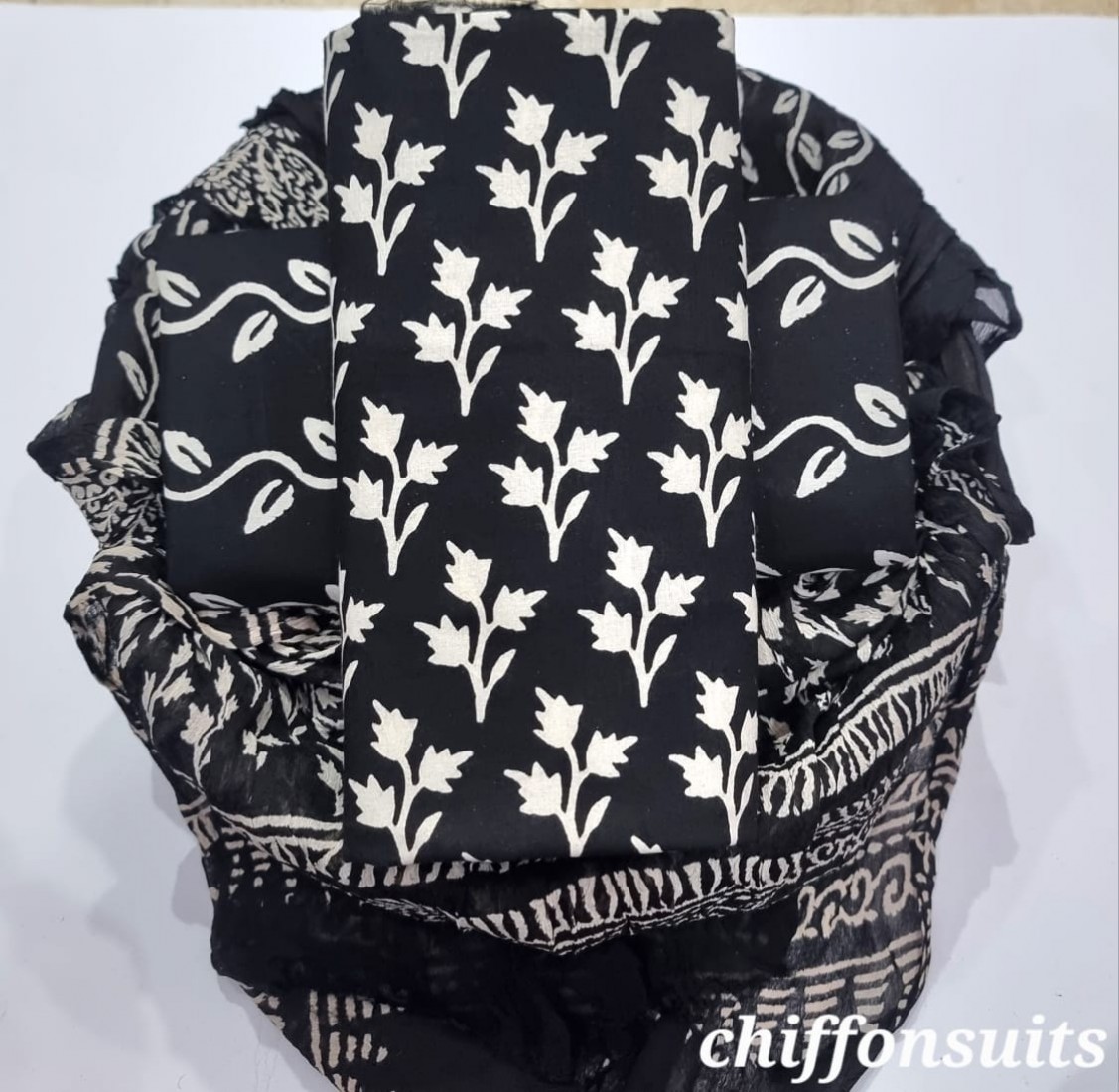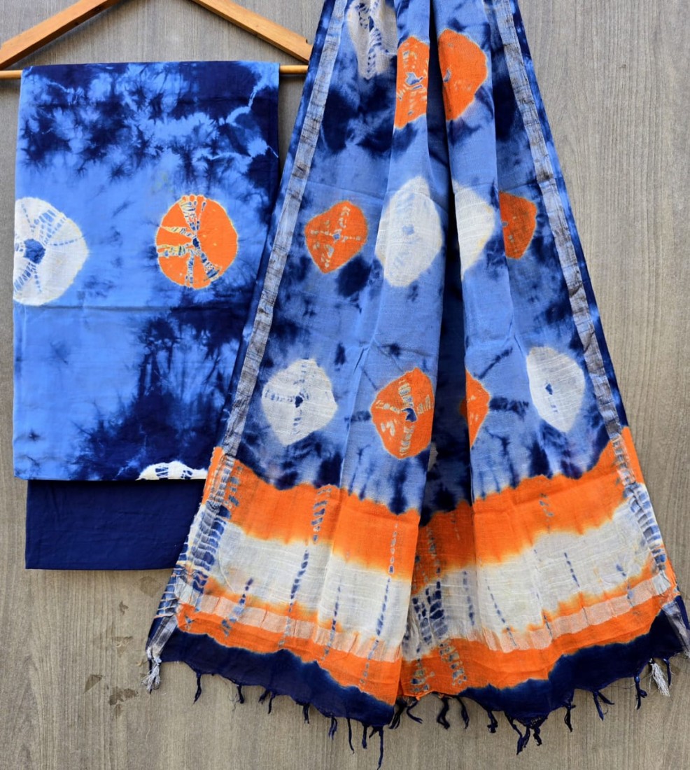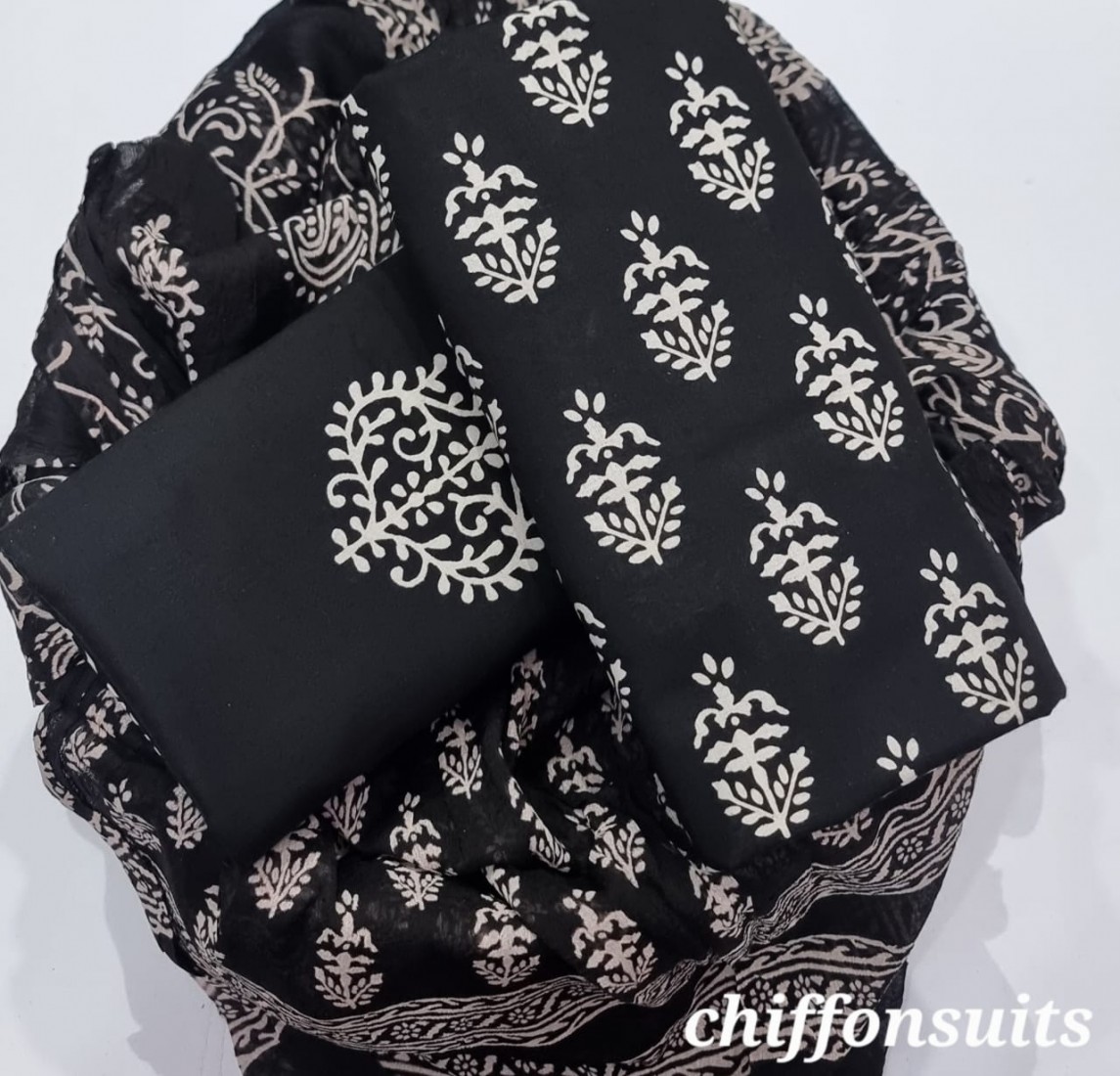 new hand block printed cotton dress materials with chiffon duptta