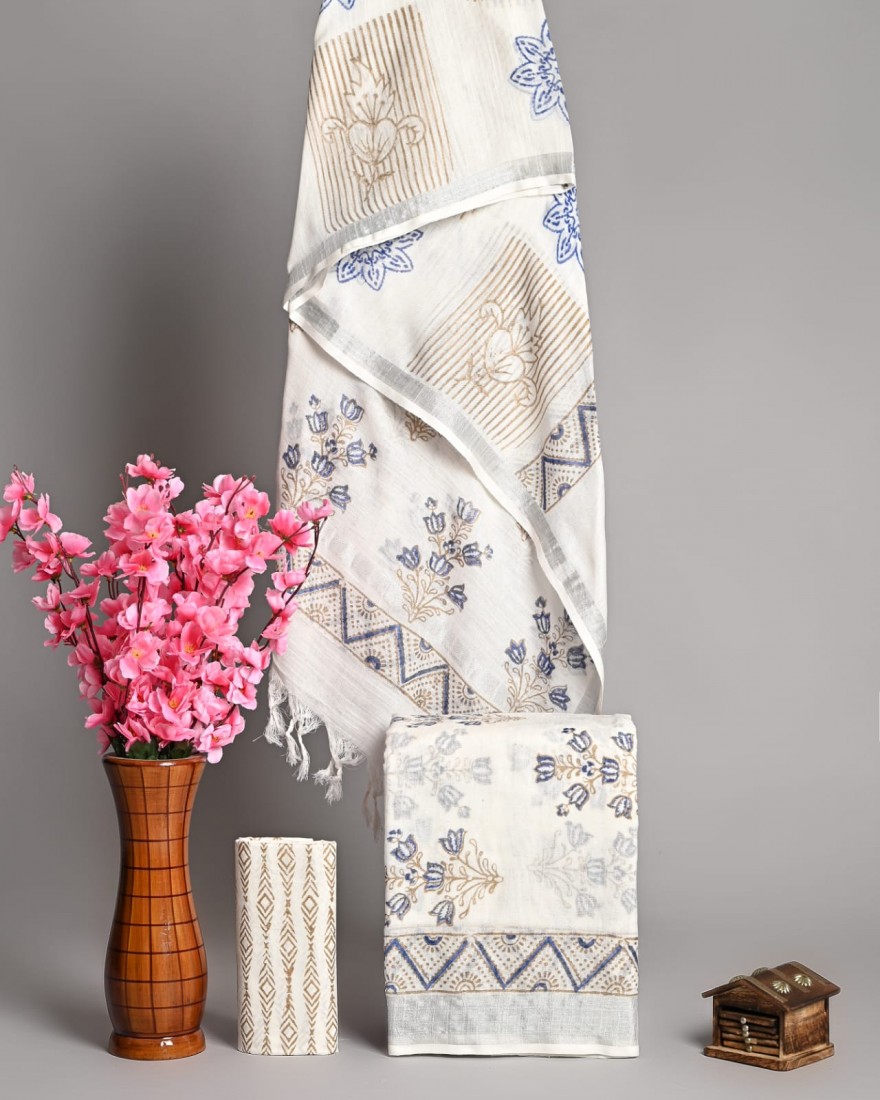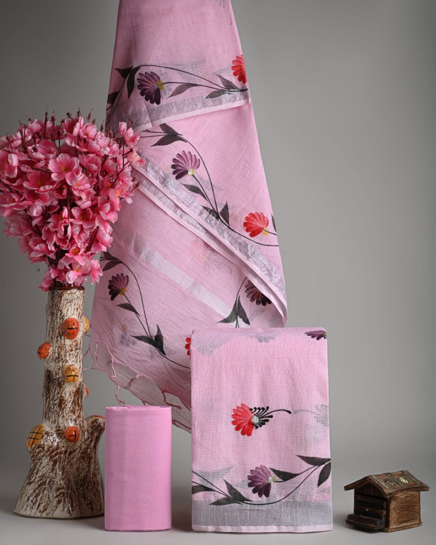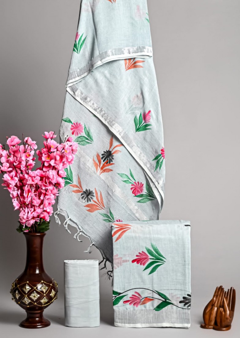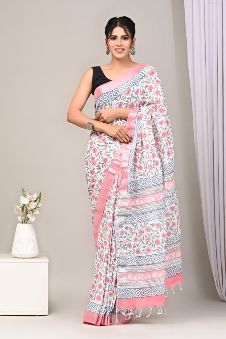 Linen Cotton Saree With Blouse