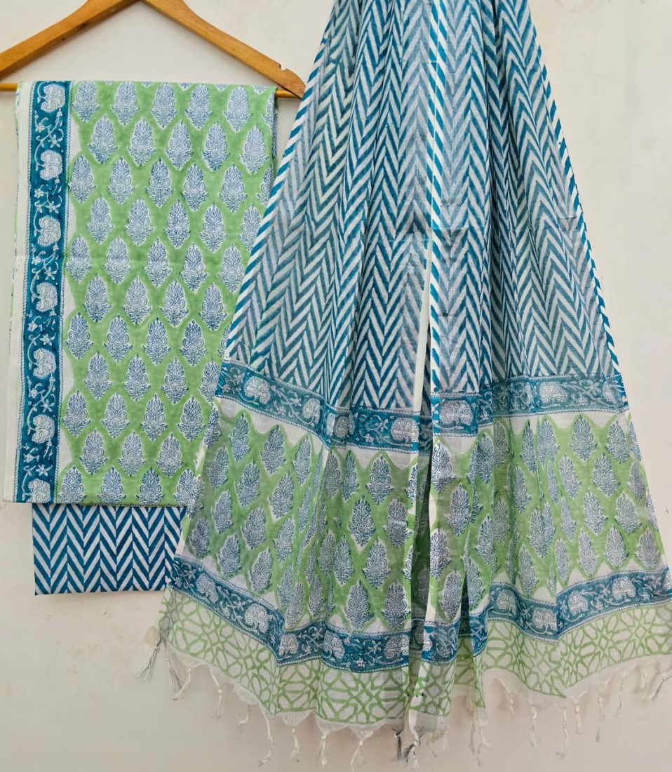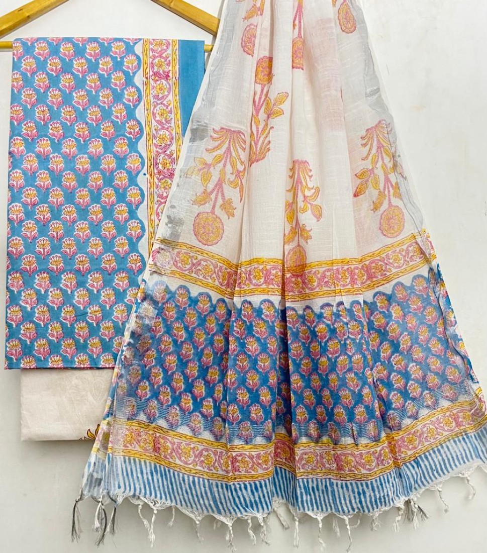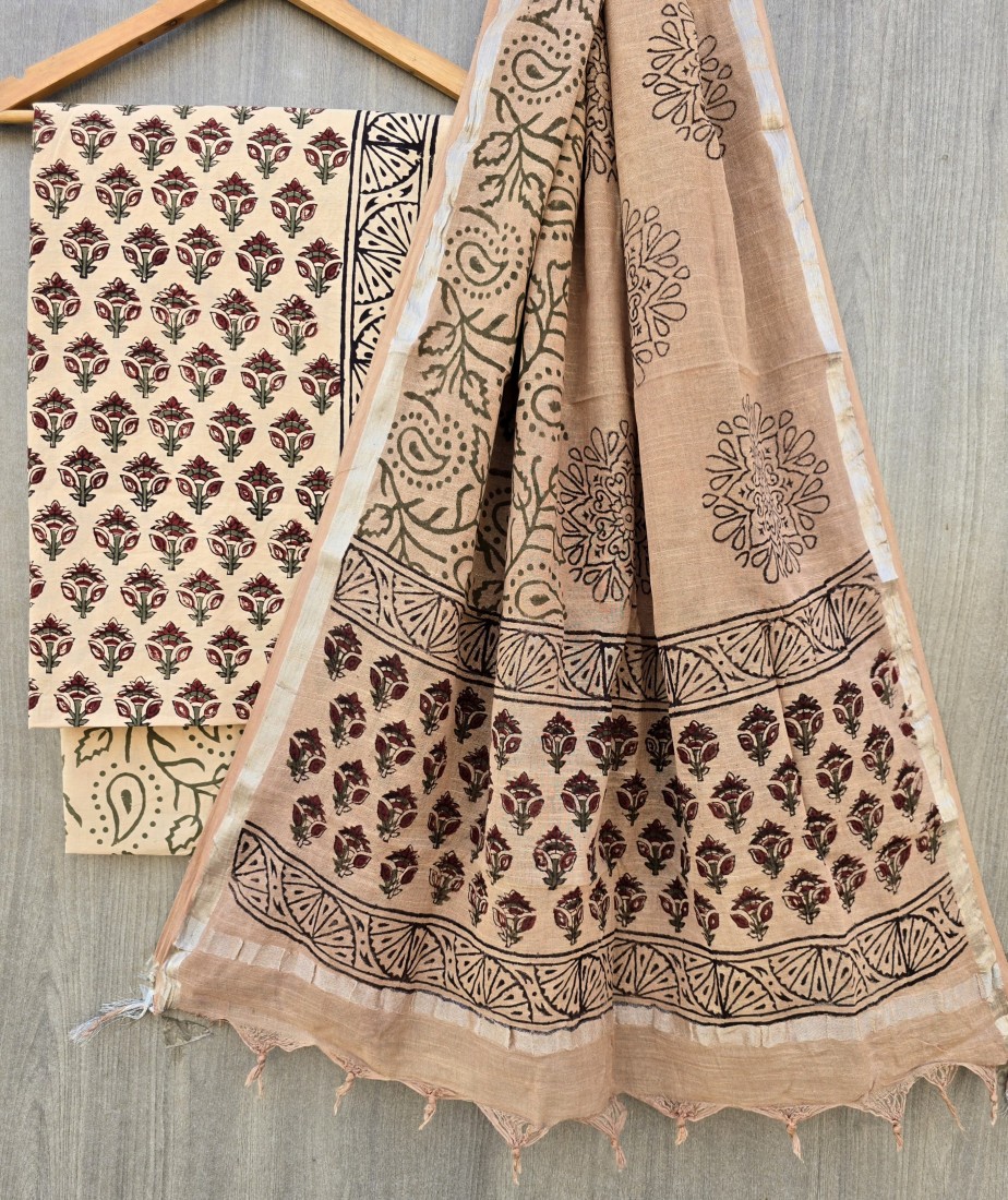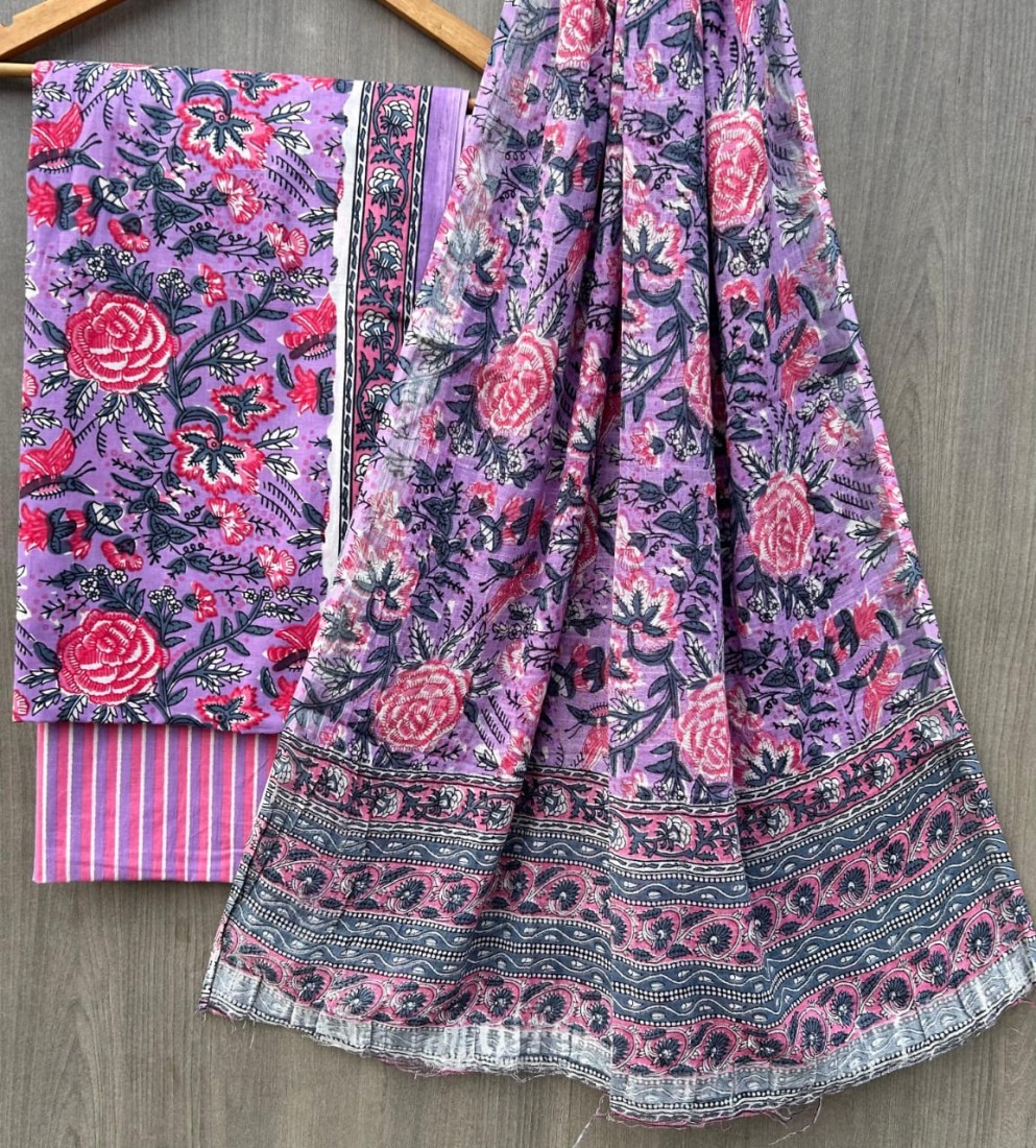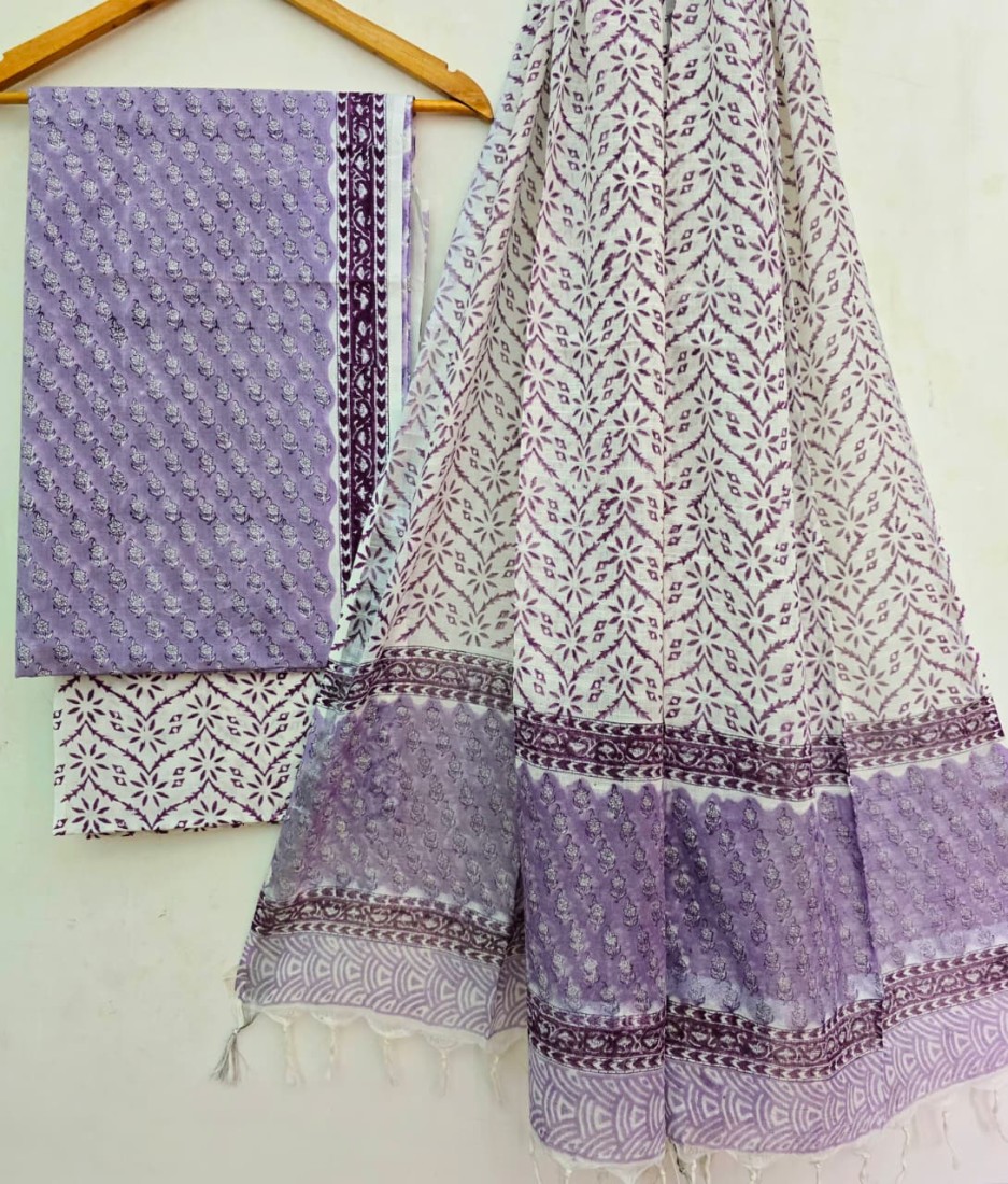 Hand Block Printed Cotton suit sets with cotton li