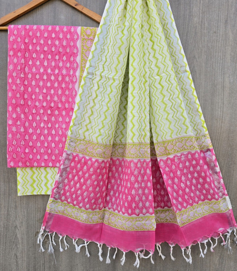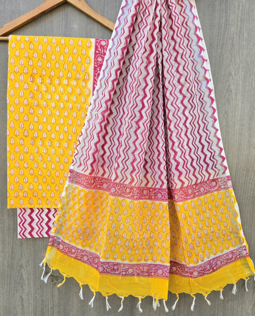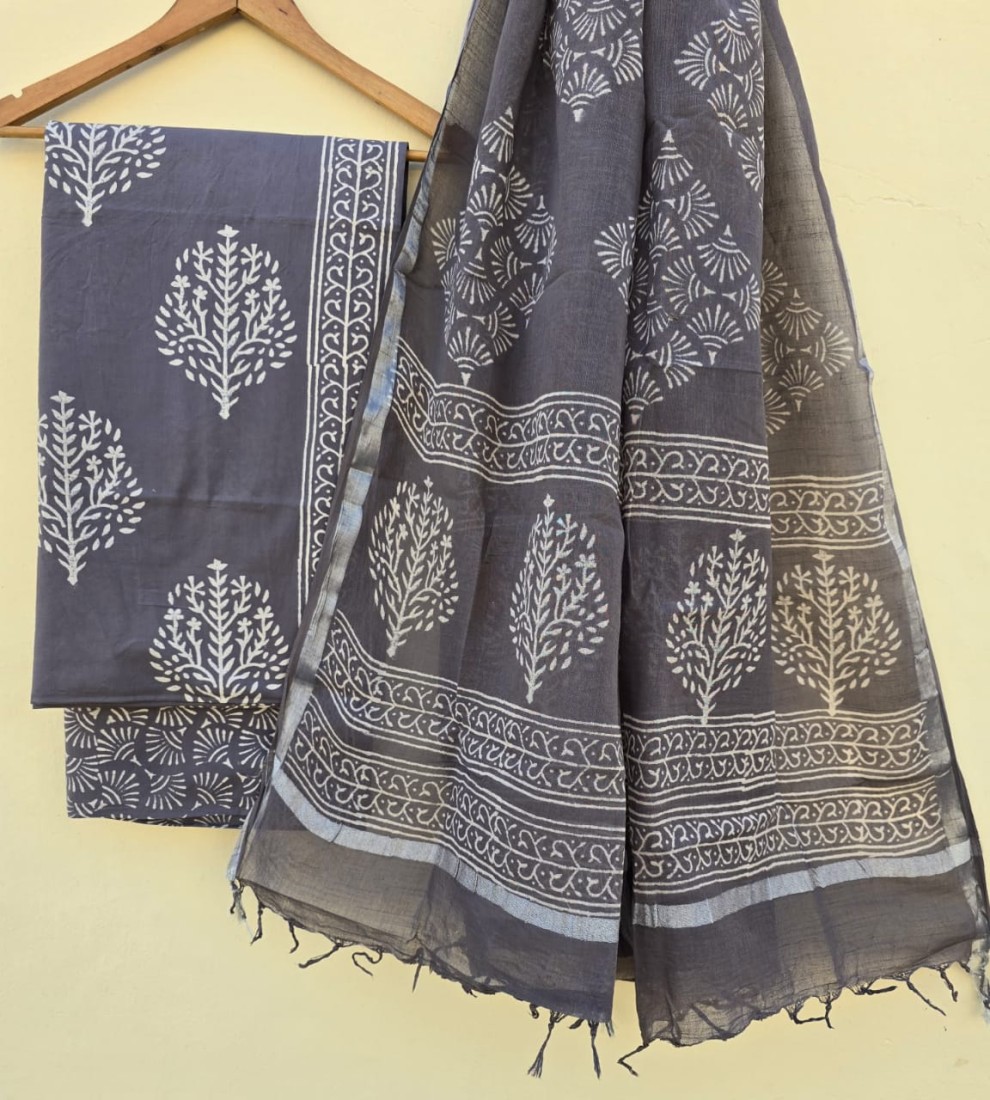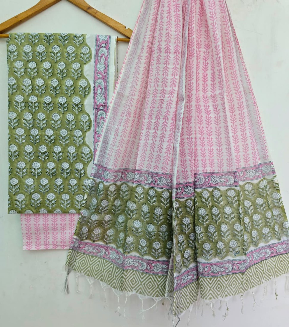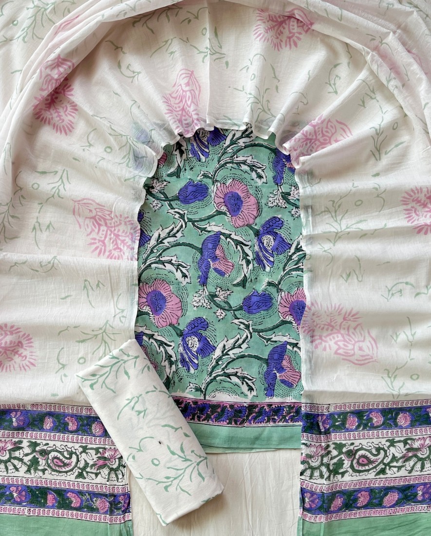 Hand Block Printed Cotton suit sets with cotton li