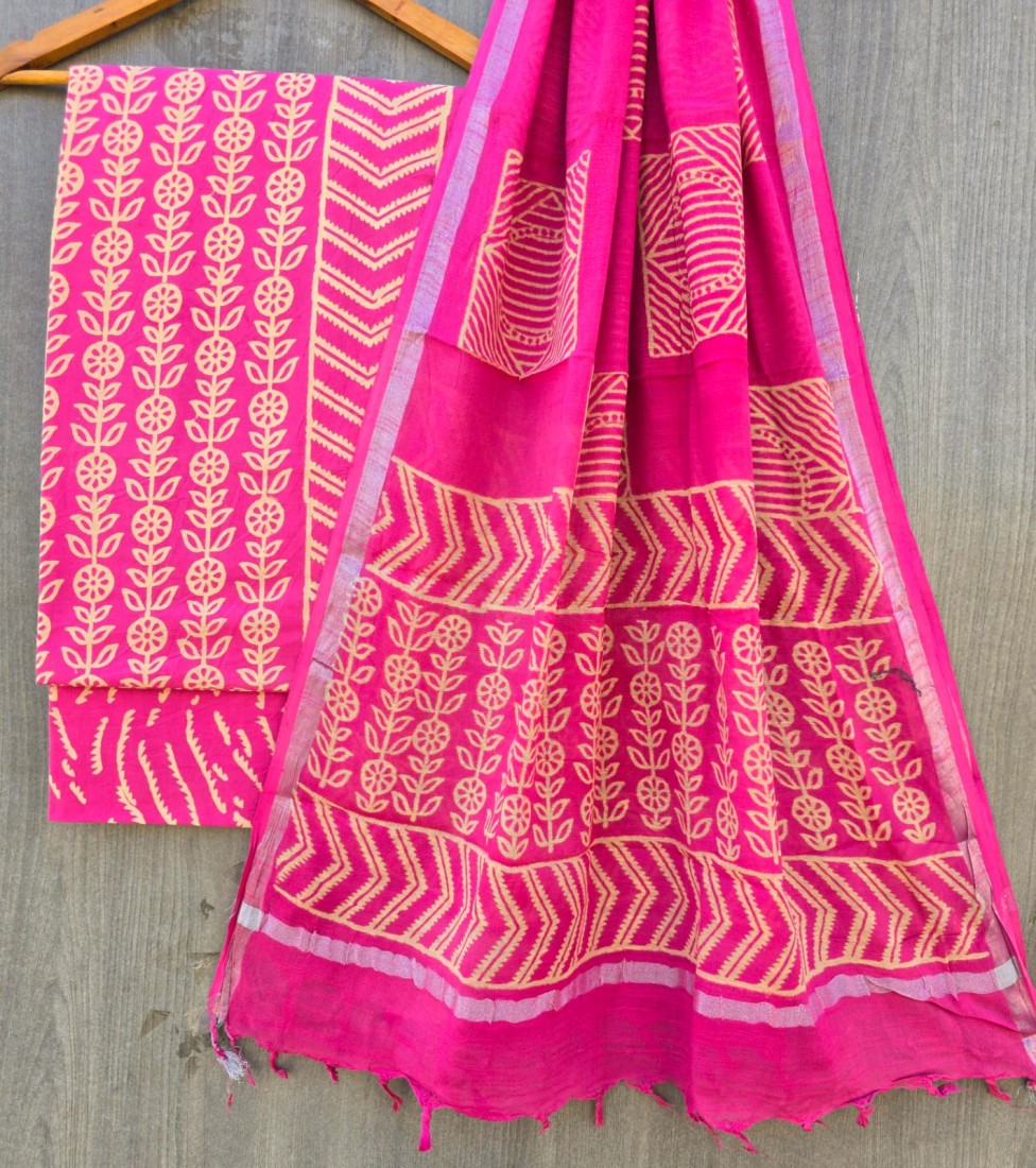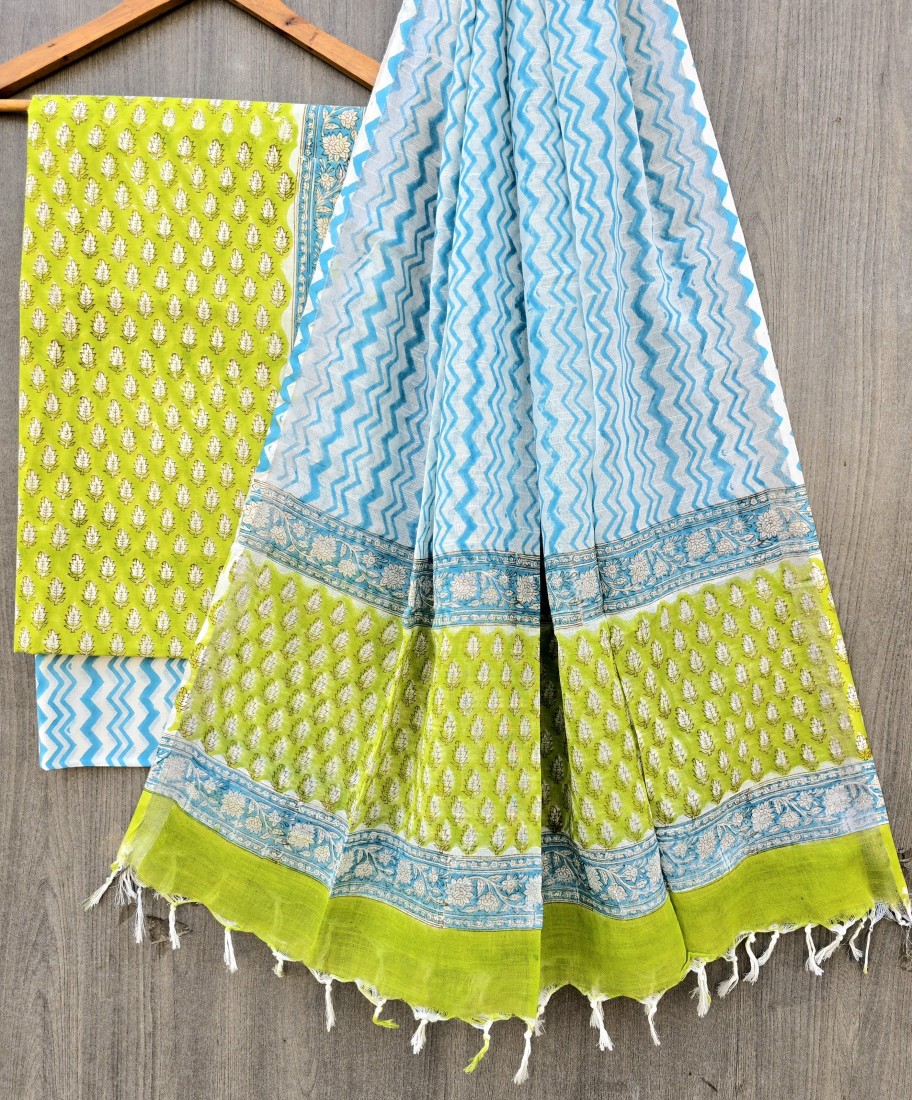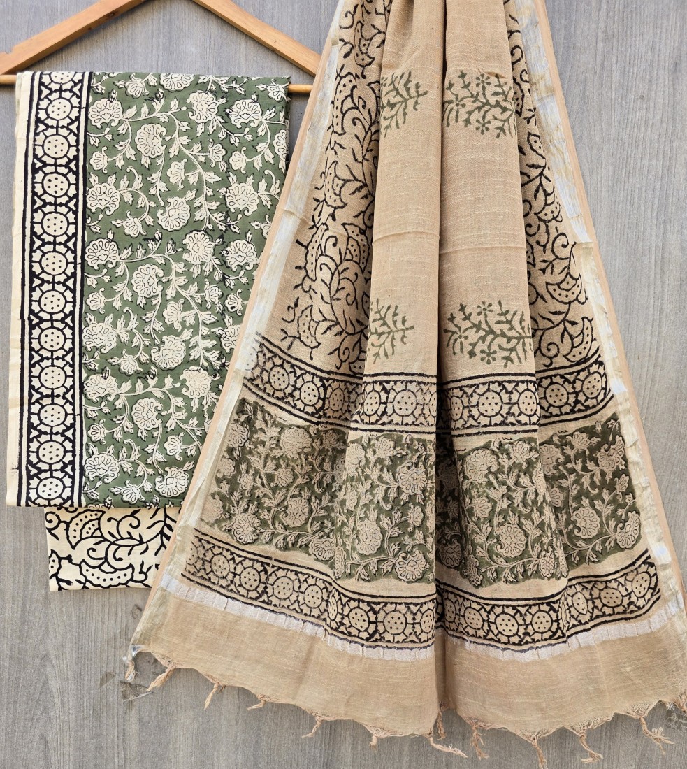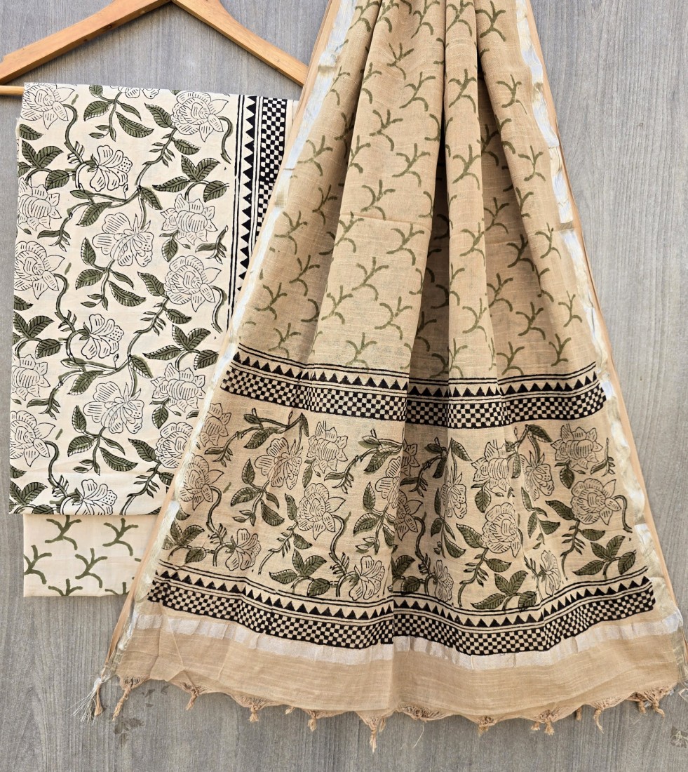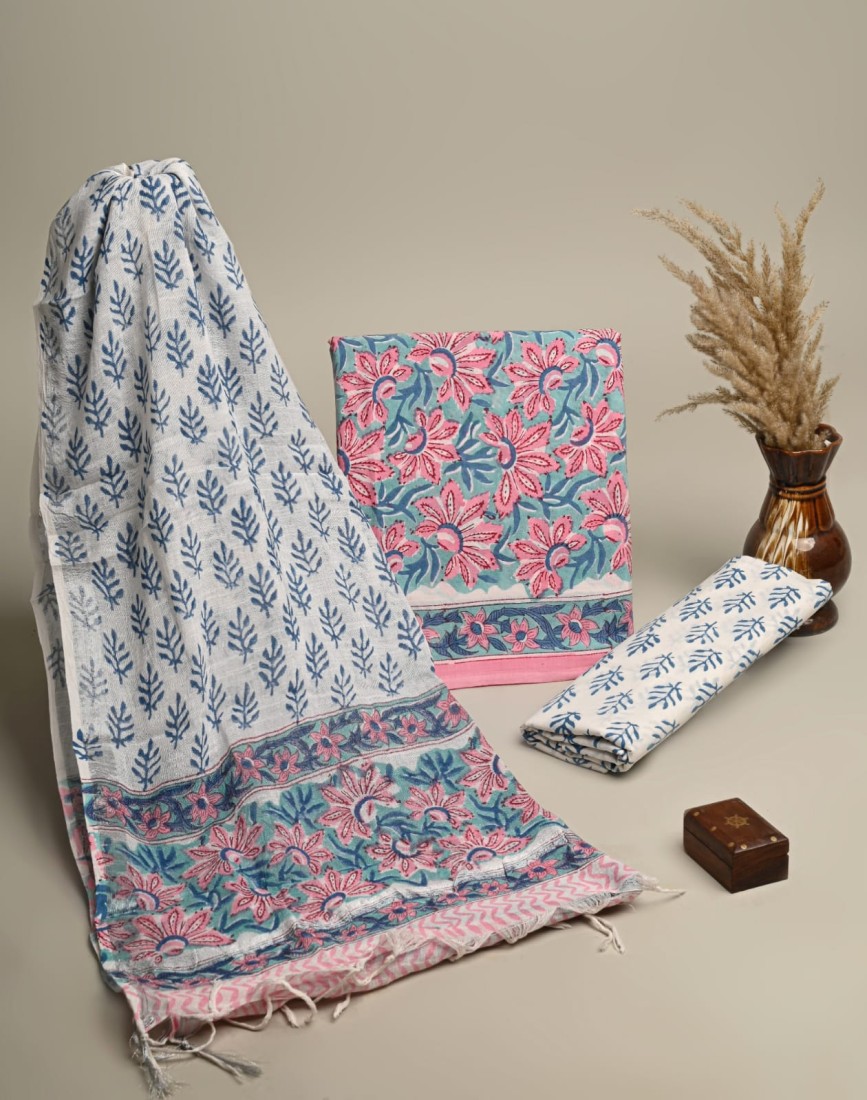 Hand Block Printed Cotton suit sets with cotton li