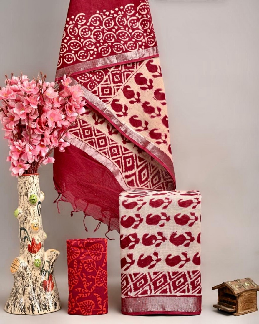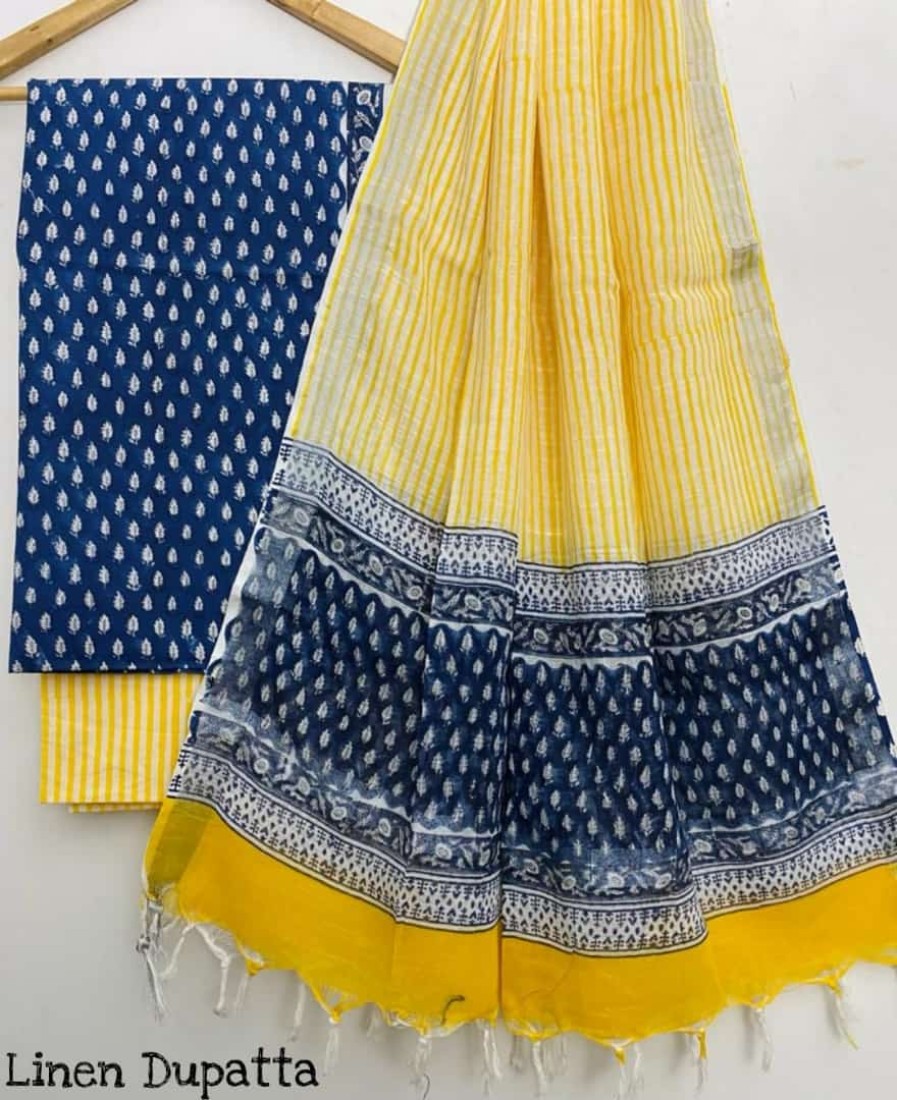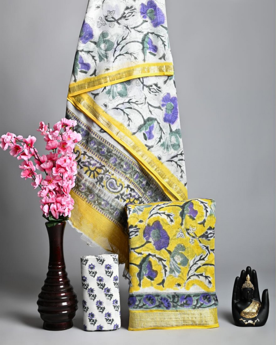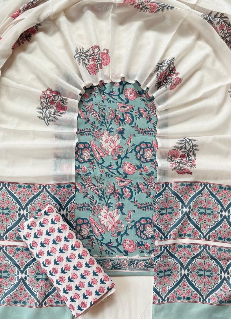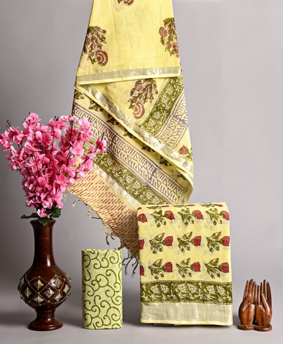 Hand Block Printed Cotton suit sets with cotton li