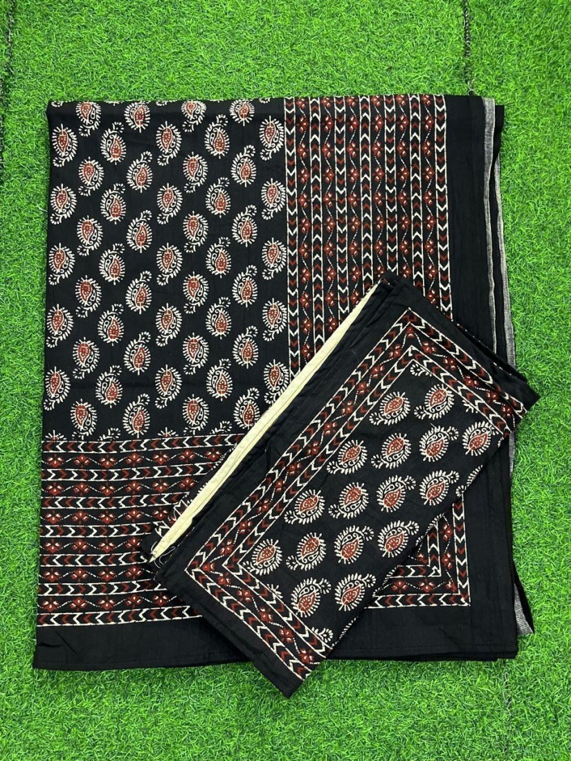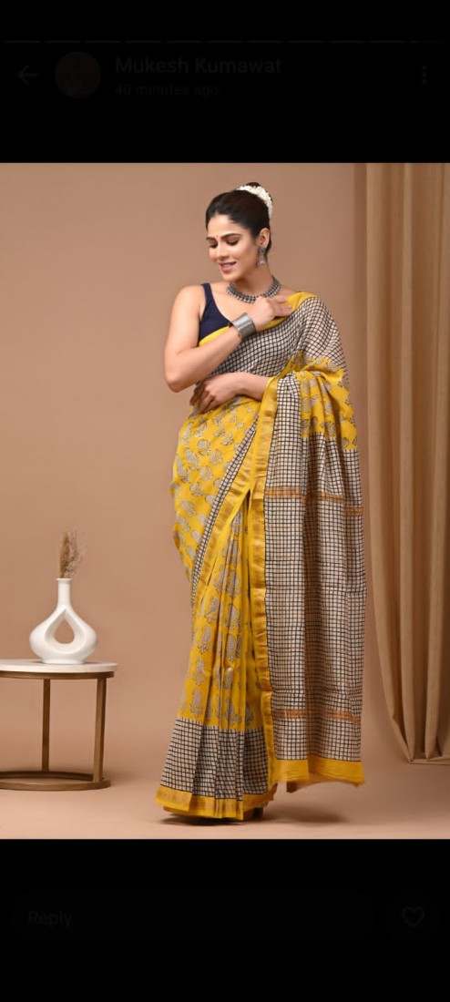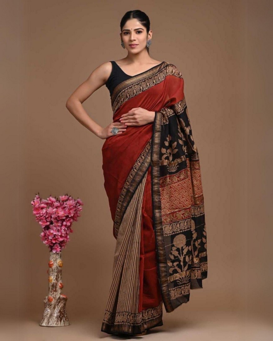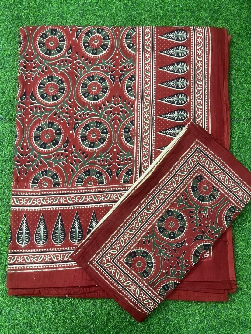 Hand block printed chanderi silk Sarees with blouse