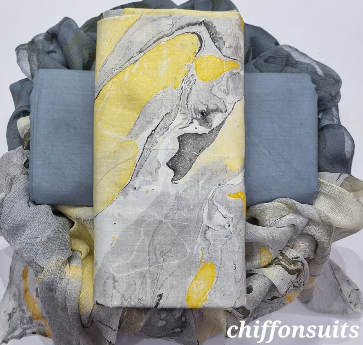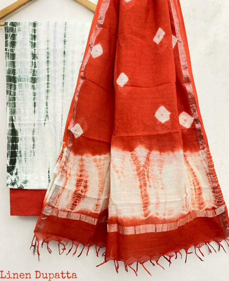 Unstitched Cotton Dress with Chiffon Dupatta