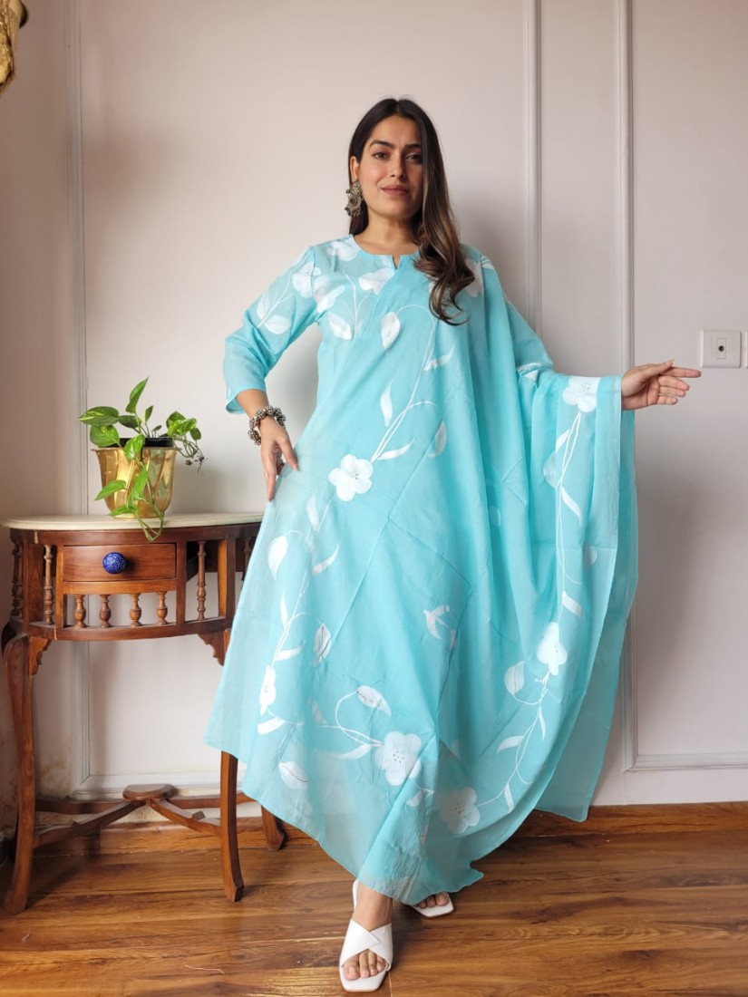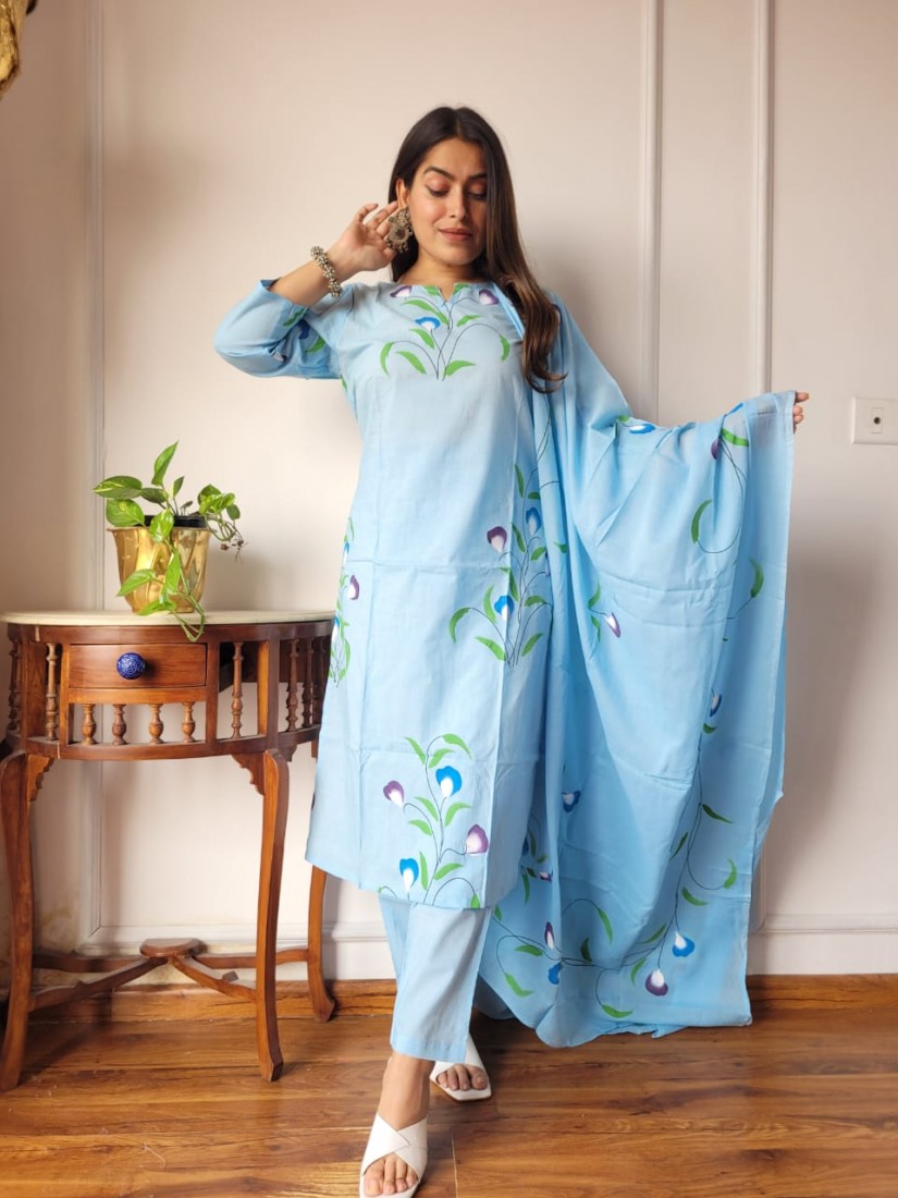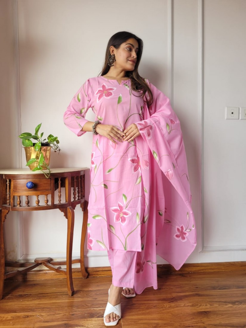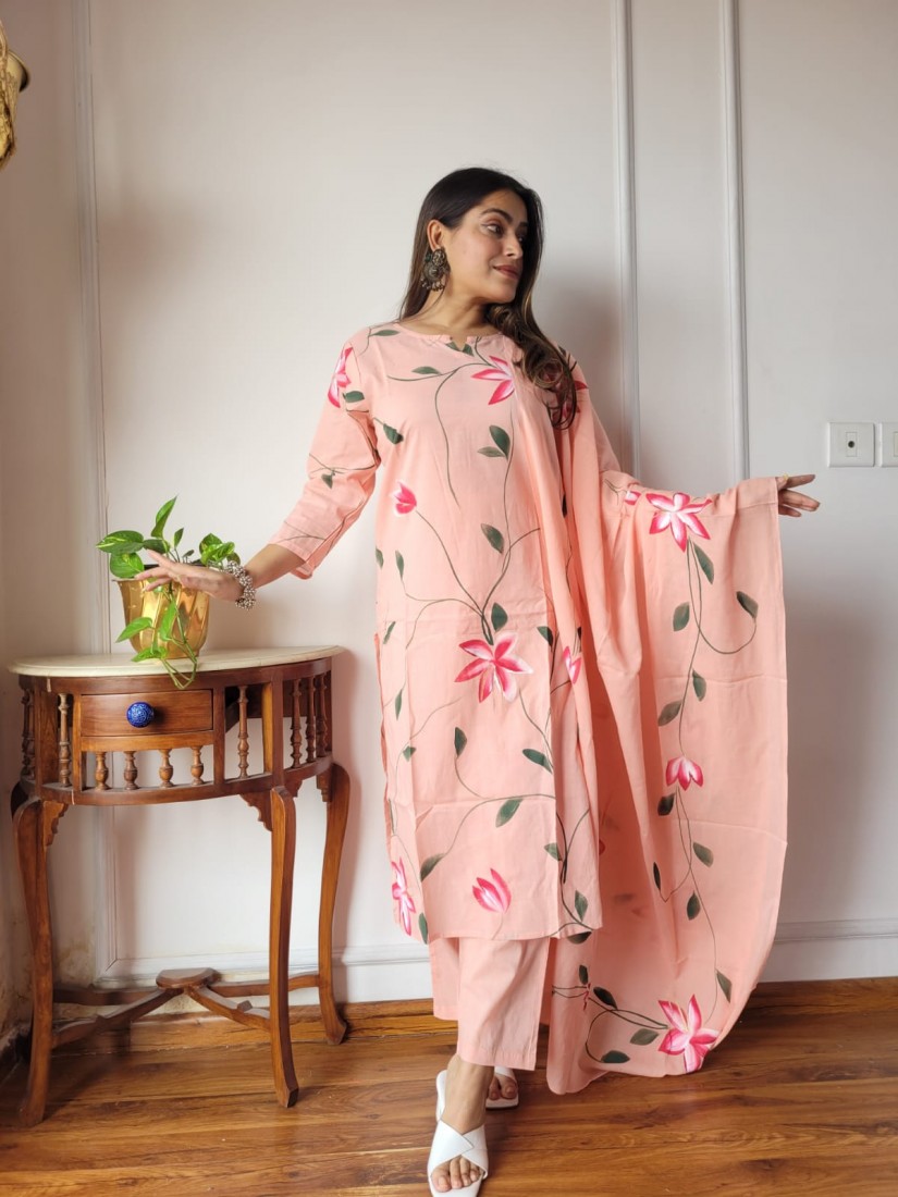 Stitched Cotton Suits With Cotton Dupatta