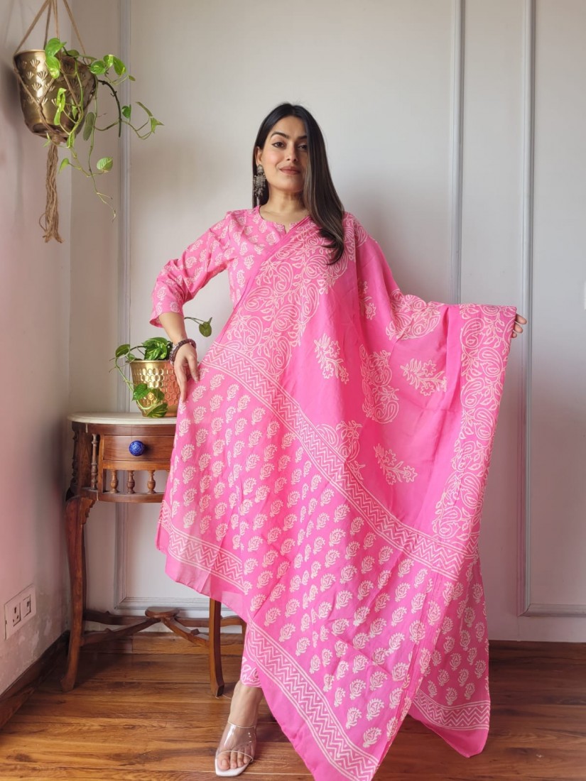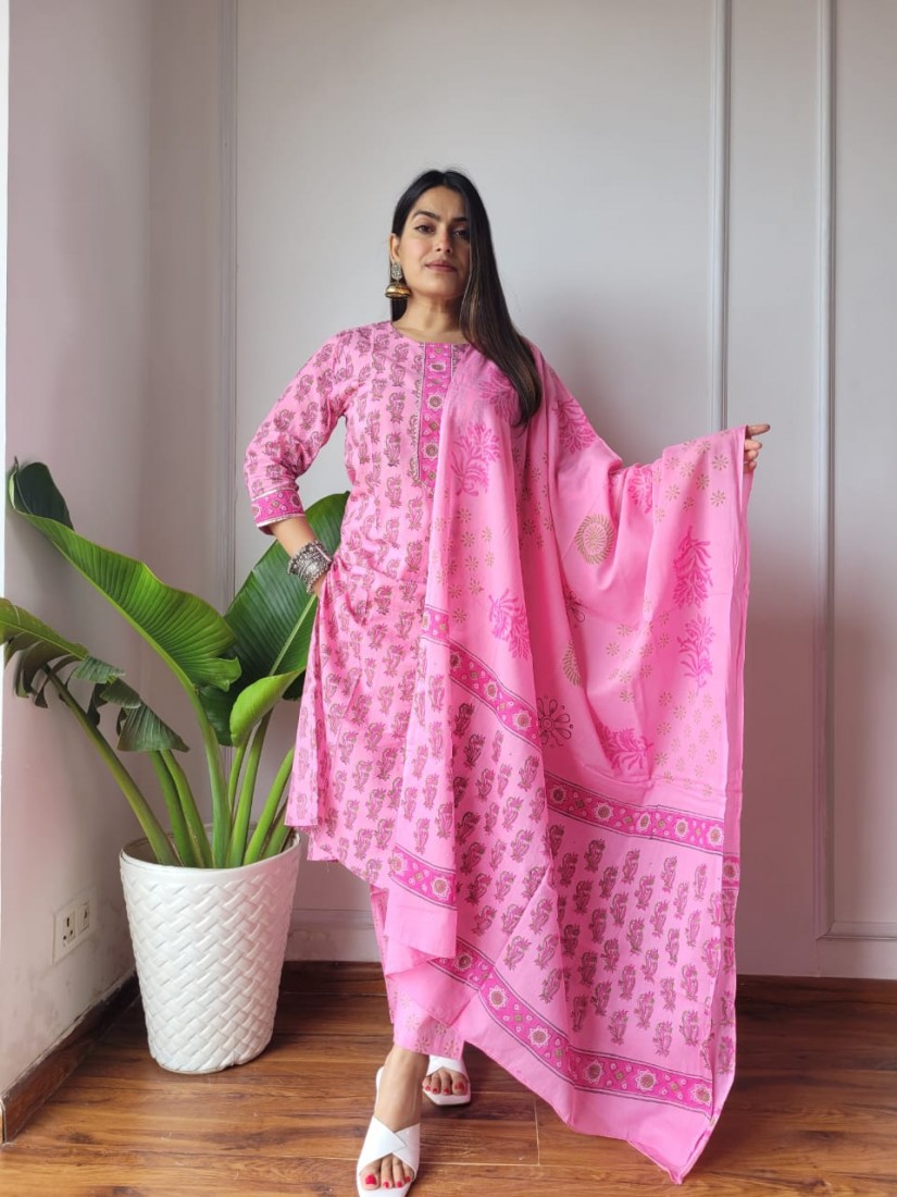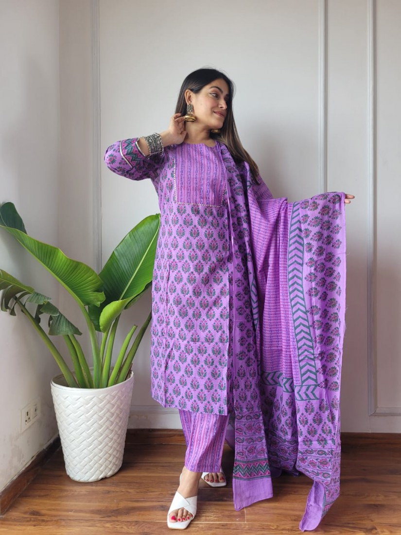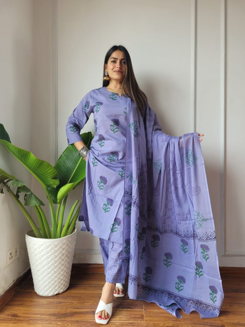 New Exclusive Collection of Hand Block Printed "Stitched" Cotton Suits With Cotton Dupatta in Beautiful Colours