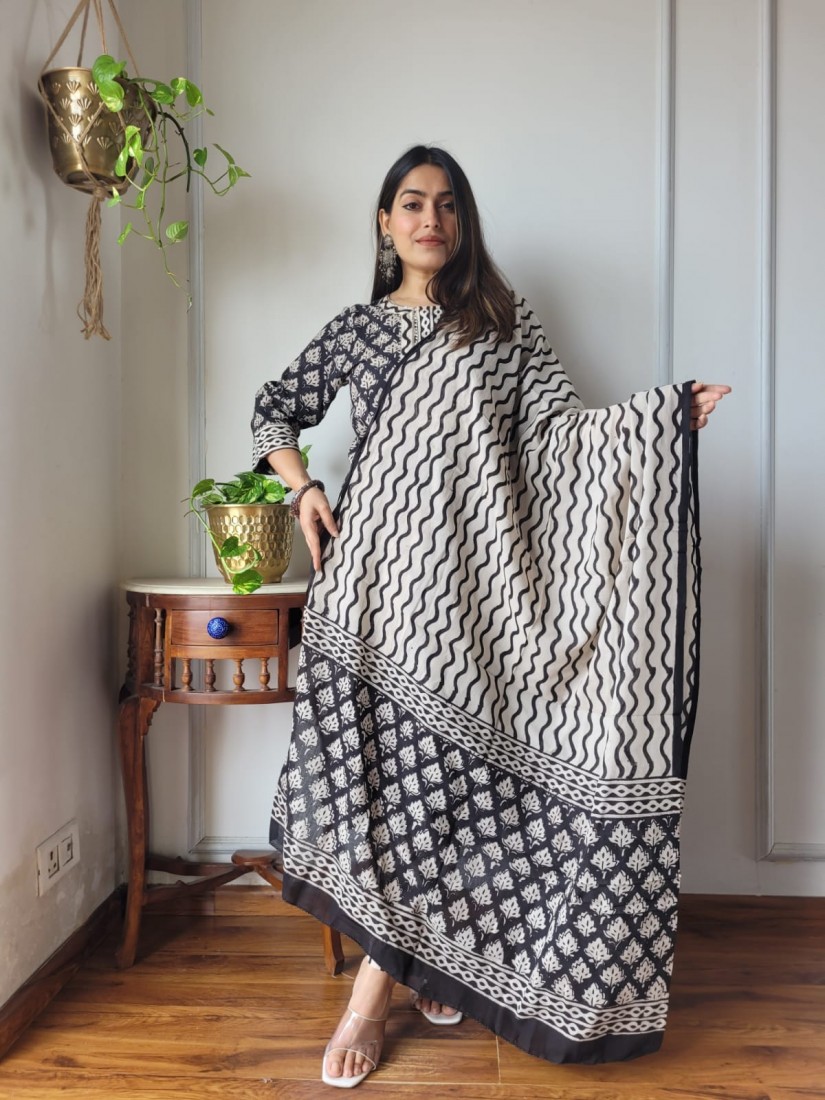Hand block printed cotton suit with cotton Duptta